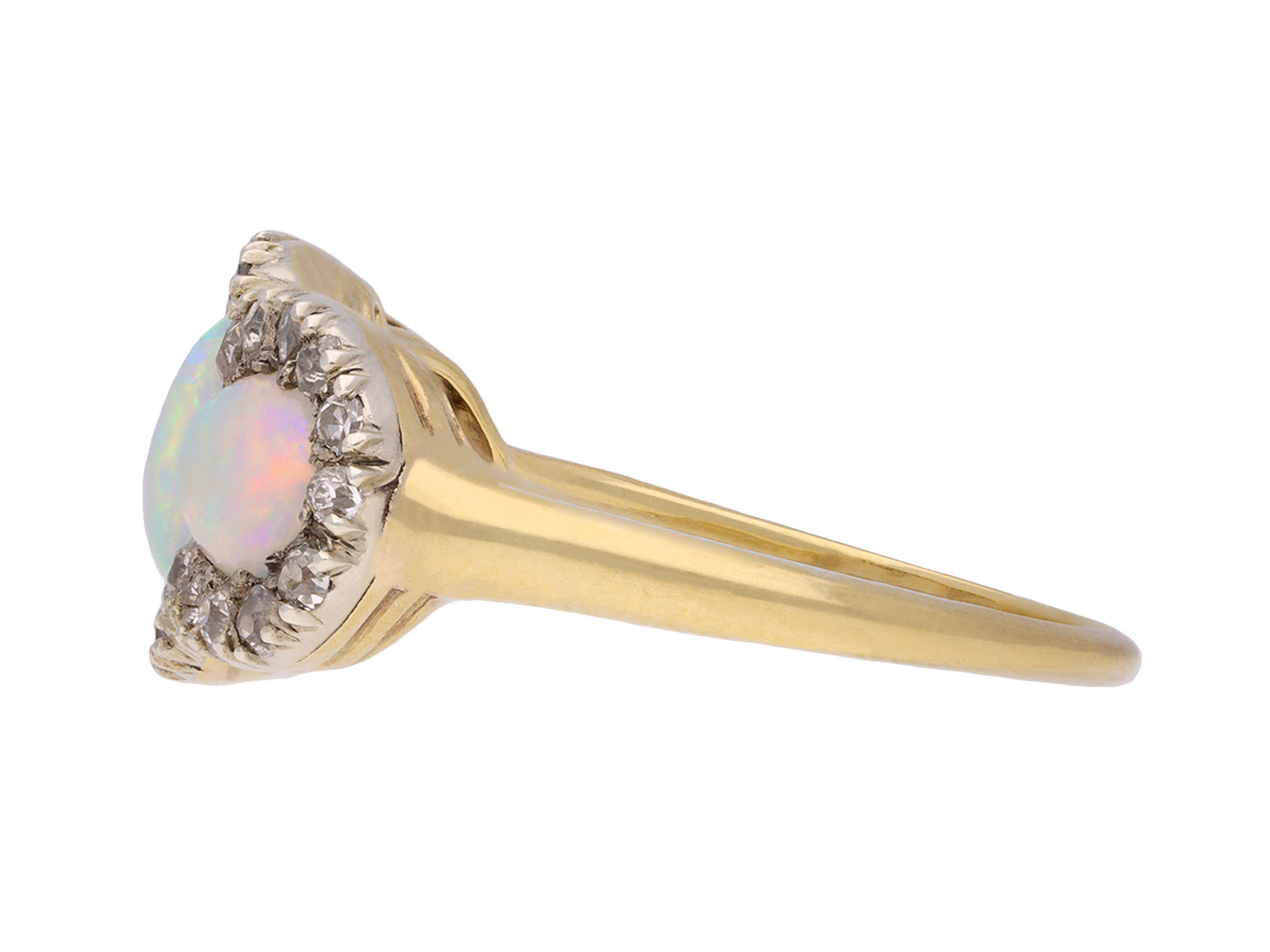 Victorian opal and diamond cluster ring, circa 1890.