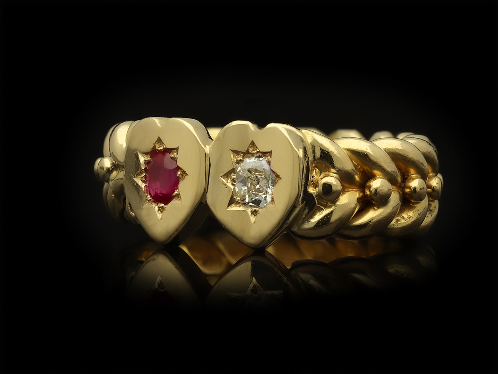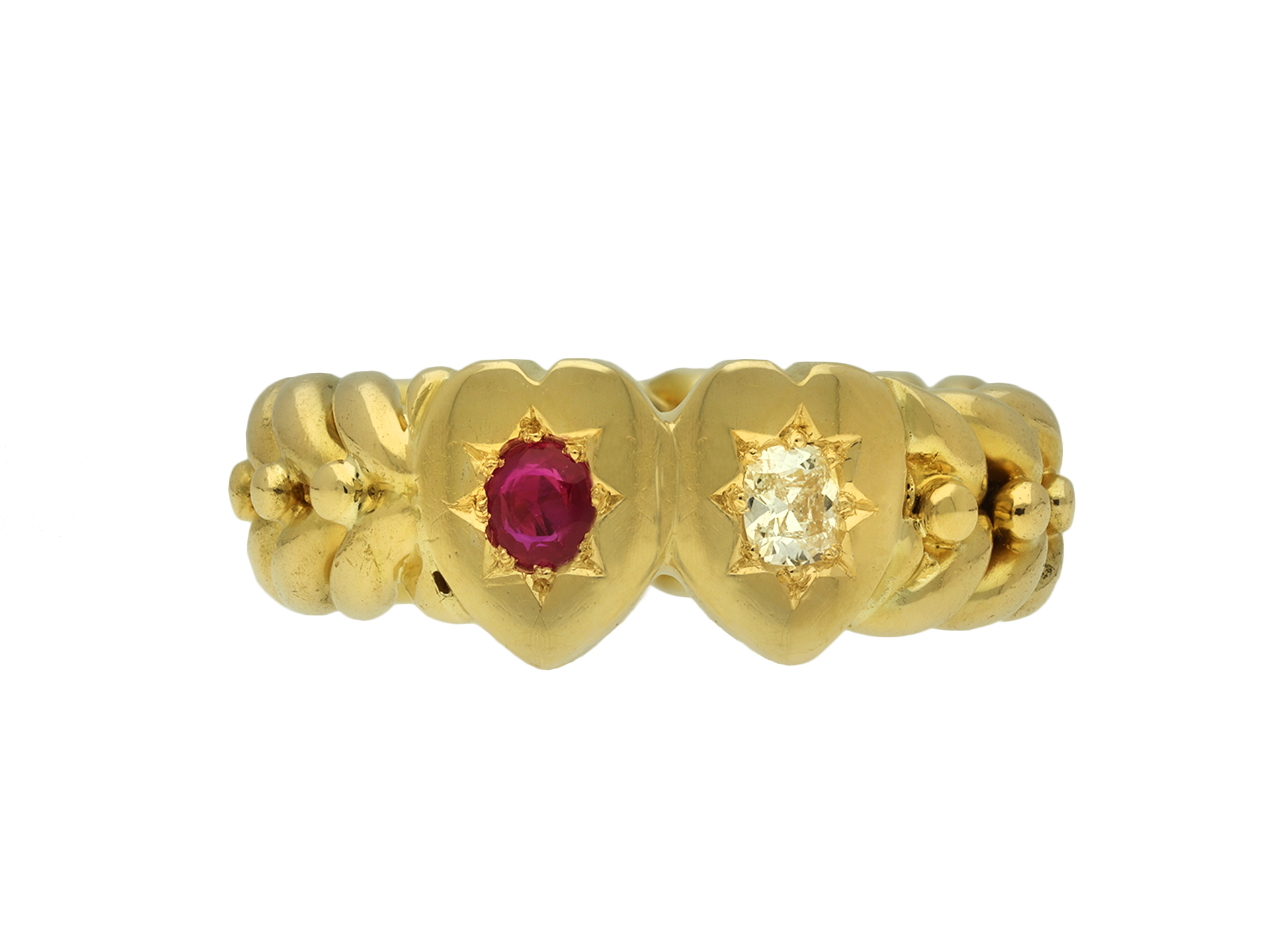 Victorian ruby and diamond two stone heart ring, circa 1890.