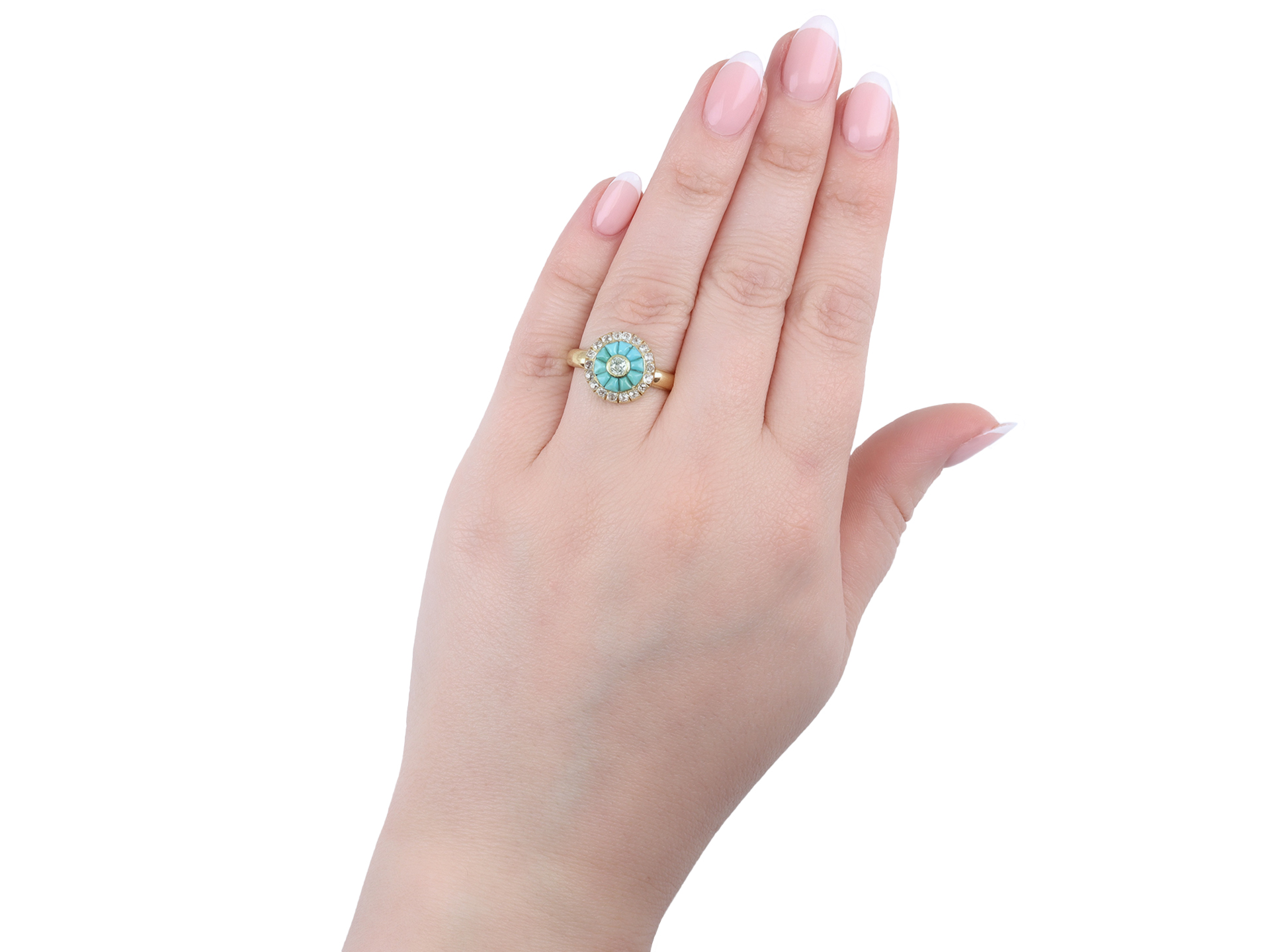 Victorian turquoise and diamond cluster ring, circa 1890.