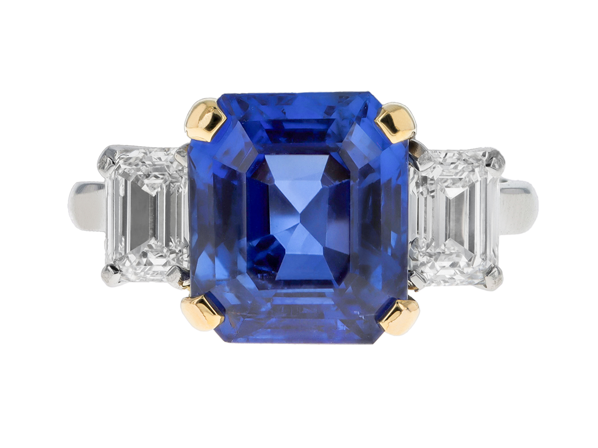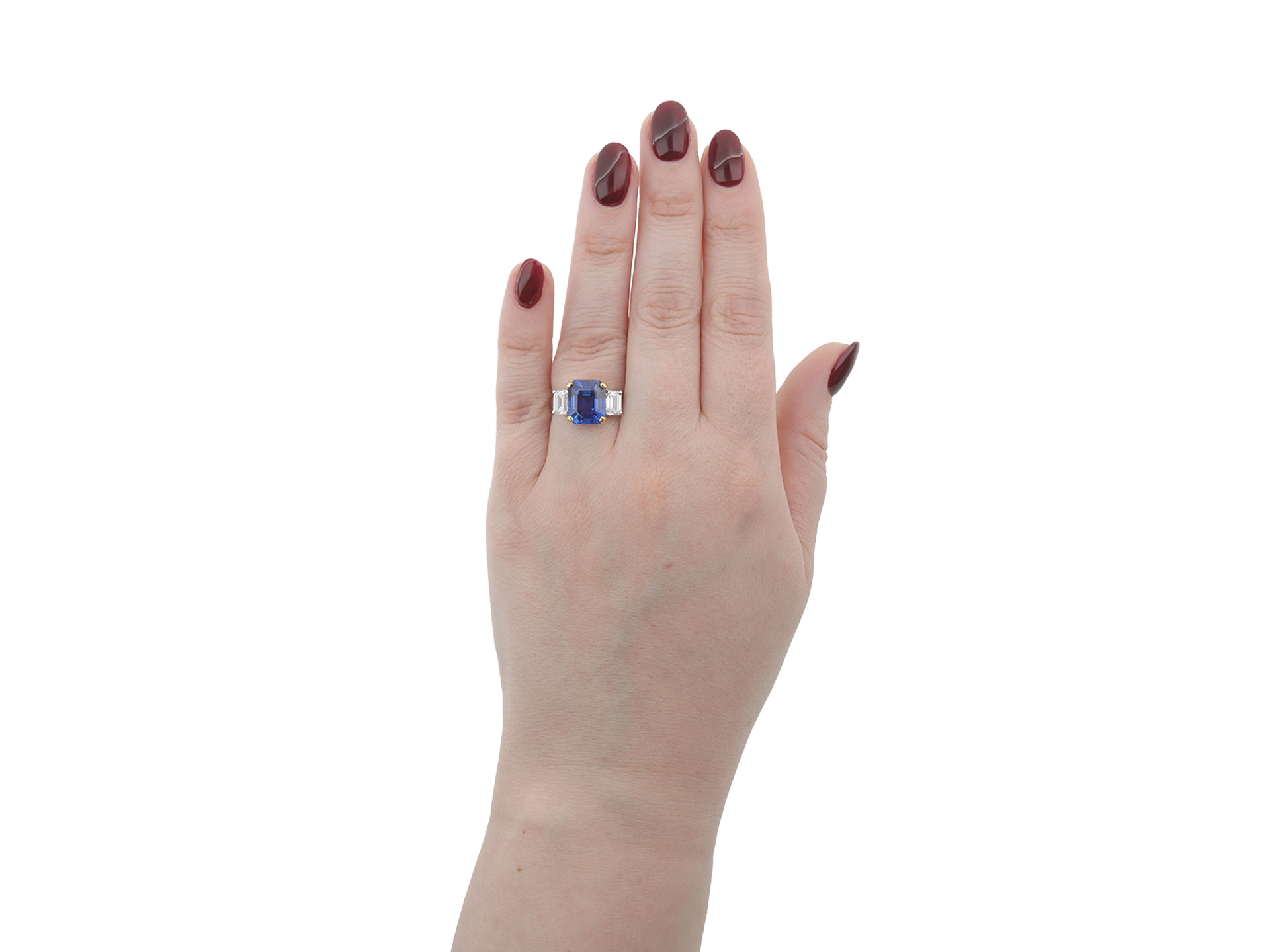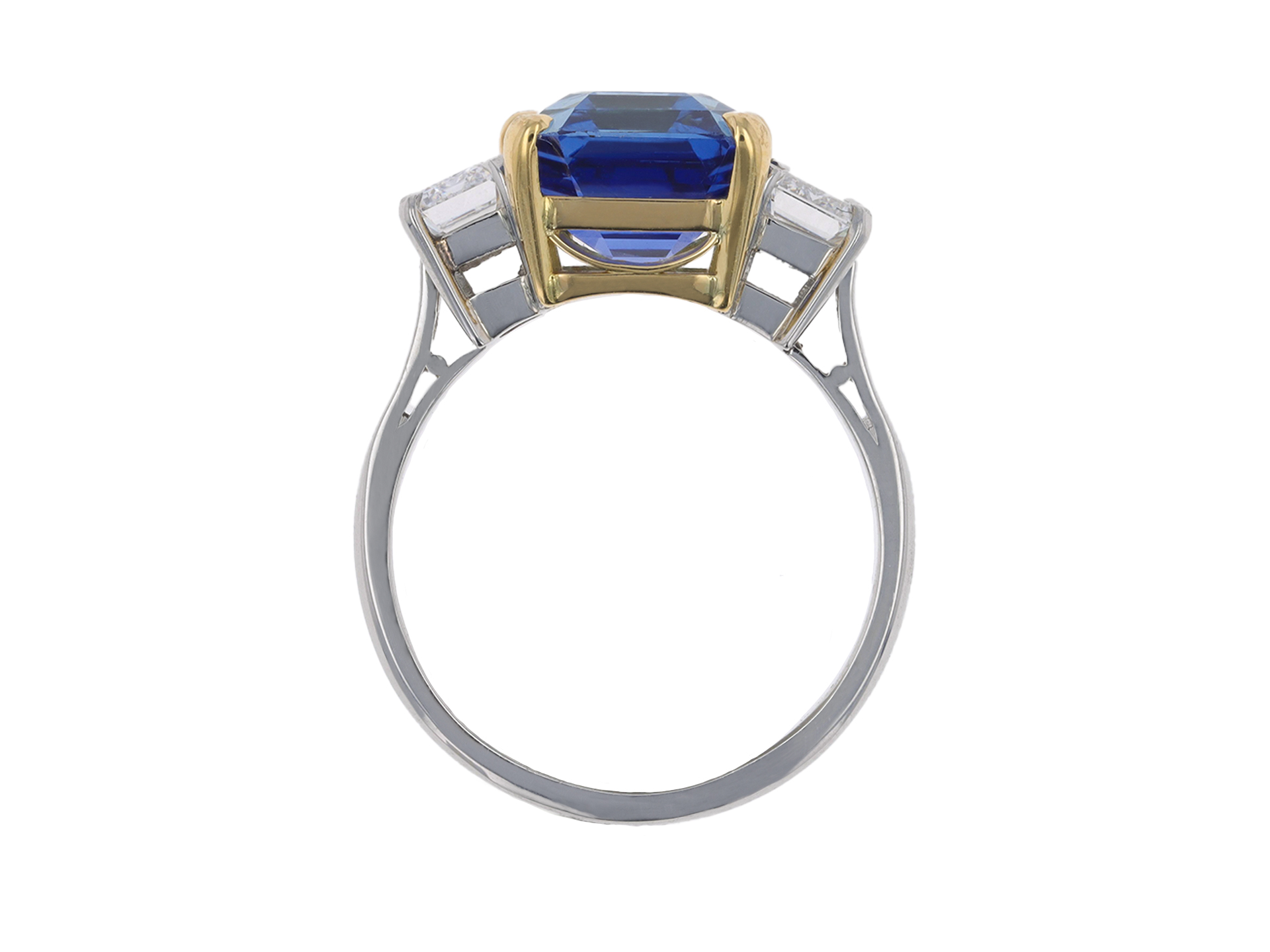 Gemstone Burmese Unheated Sapphire, Emerald Cut, 5.94ct Diamond, Emerald Cut, 0.62ct Diamond, Emerald Cut, 0.58ct