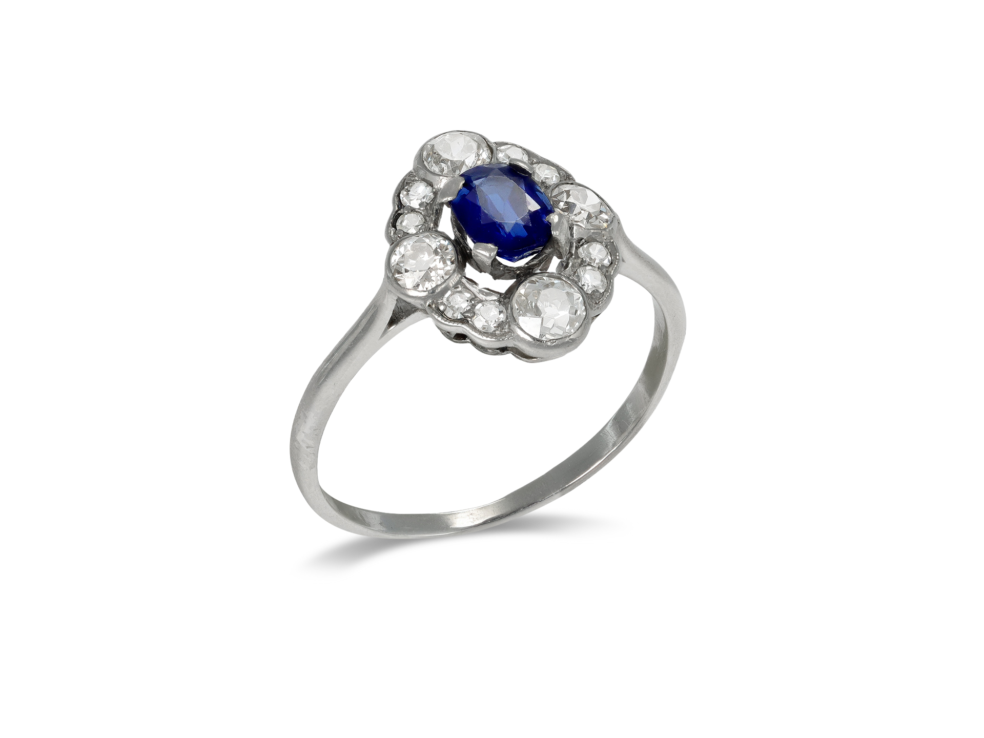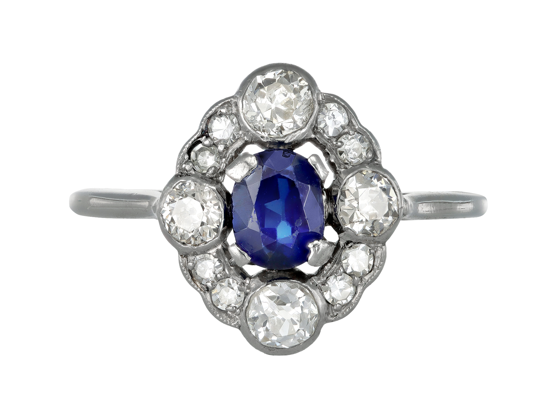 Art Deco sapphire and diamond cluster ring, circa 1930.