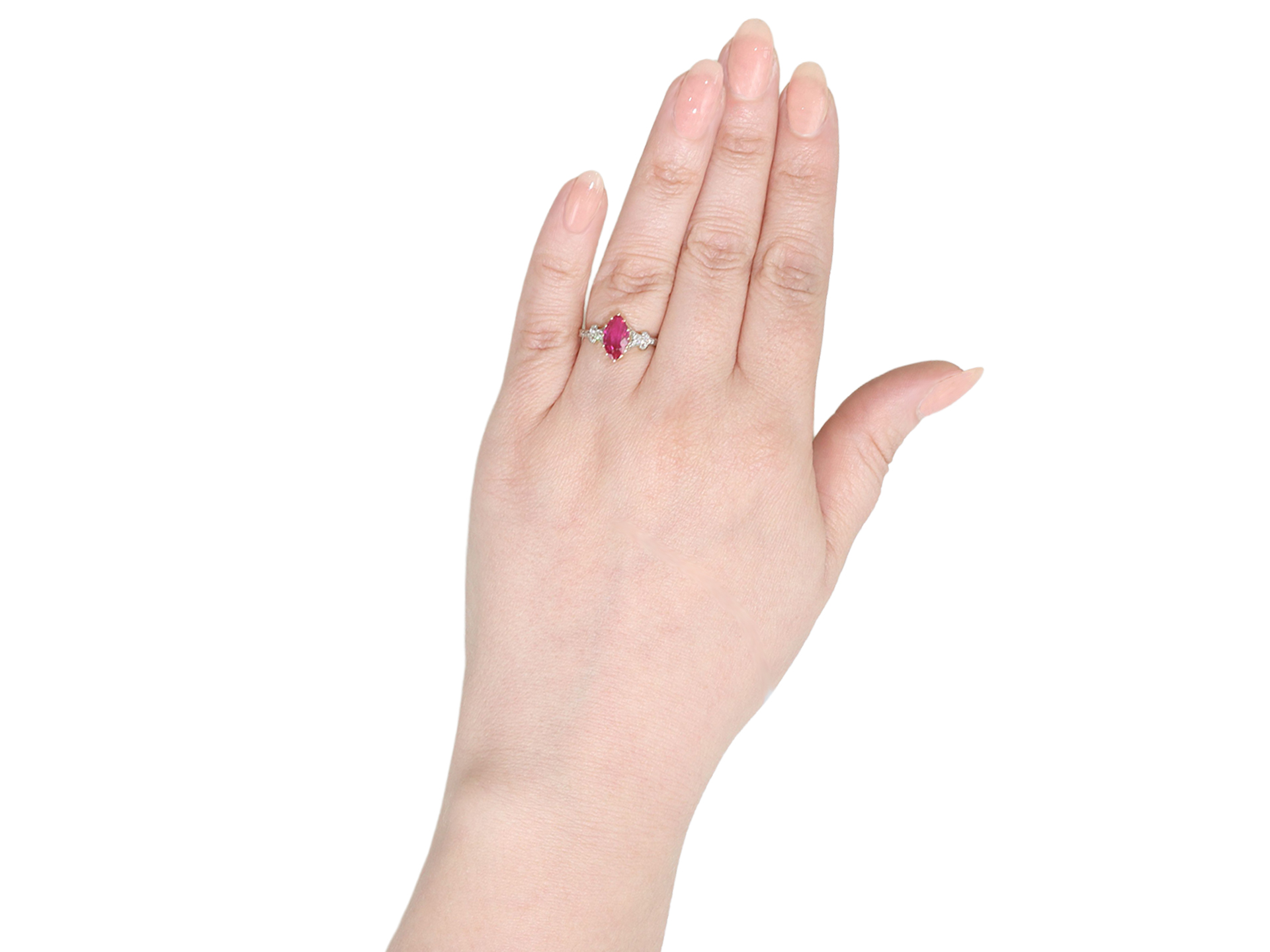 Gemstone Burmese Unheated Ruby, Marquise shape, 1.47ct 14 x Diamonds, Old Cut, approximately 0.36ct total