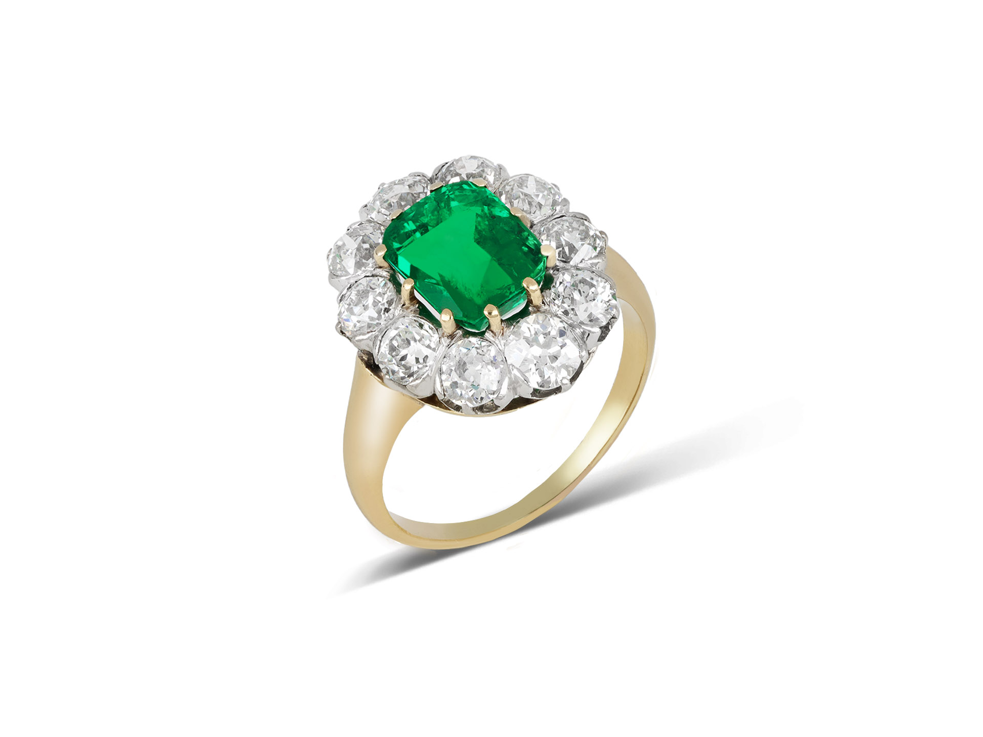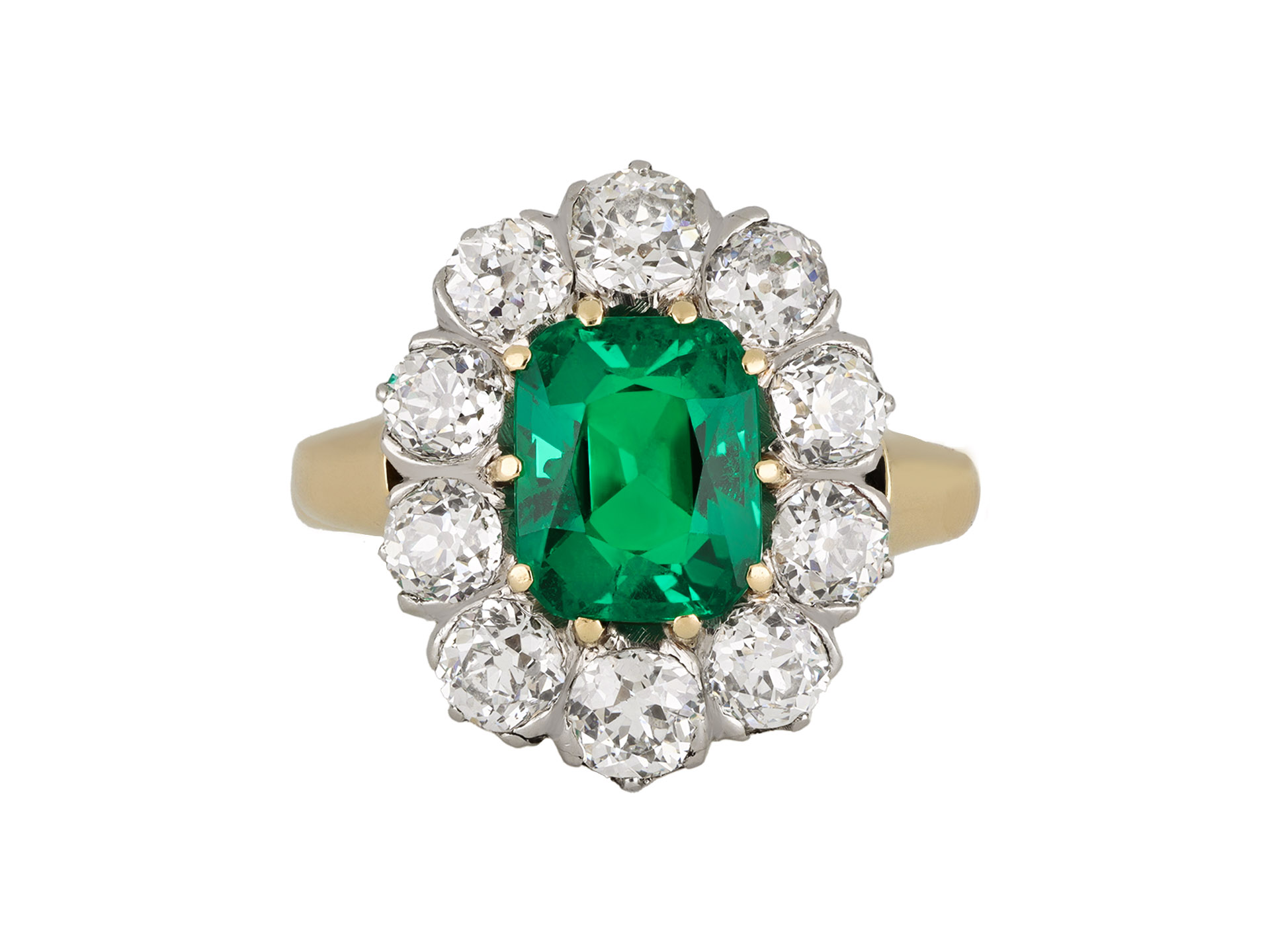 Colombian emerald and diamond coronet cluster ring, circa 1910.