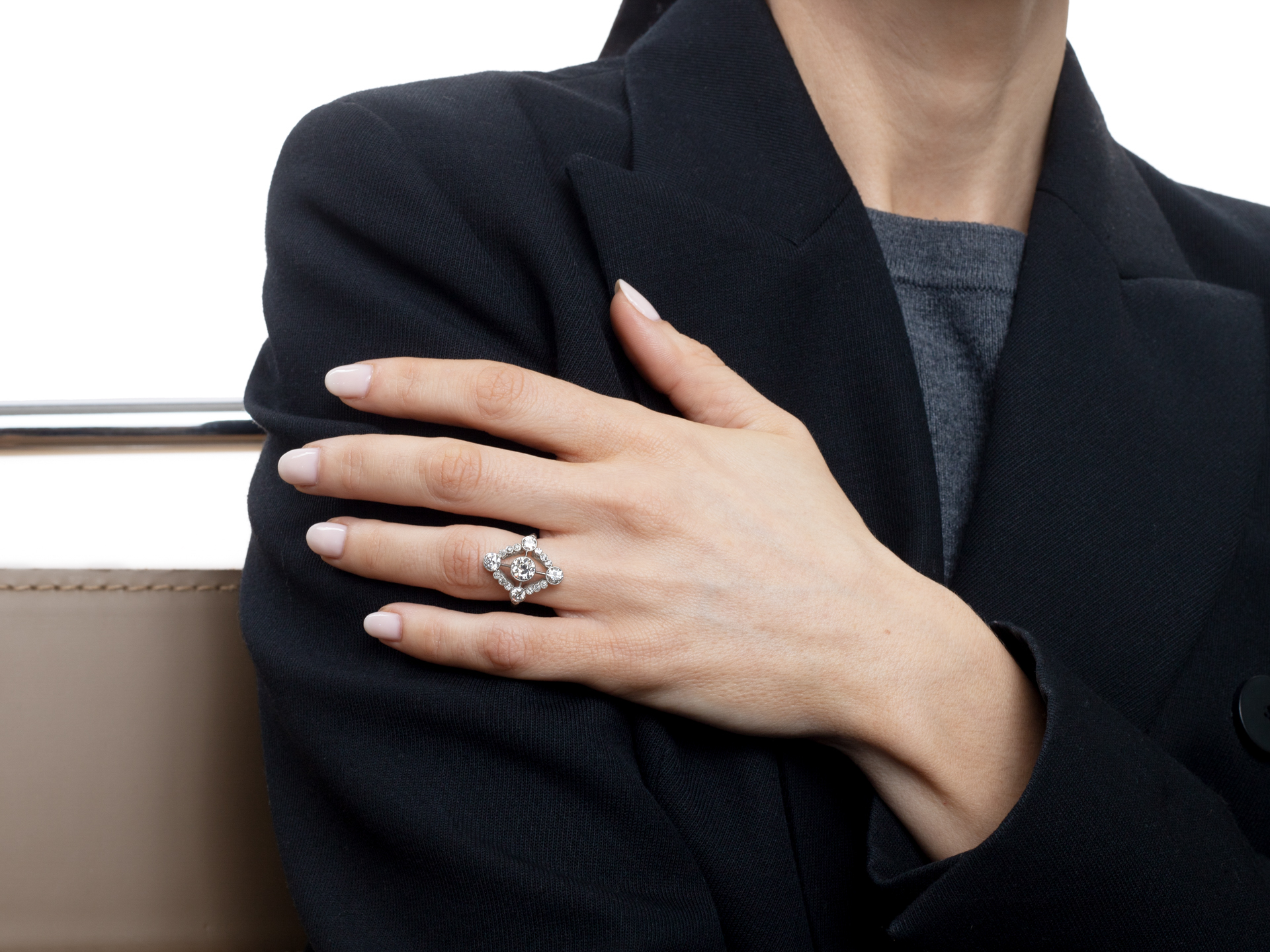 Diamond cluster ring, French, circa 1920.