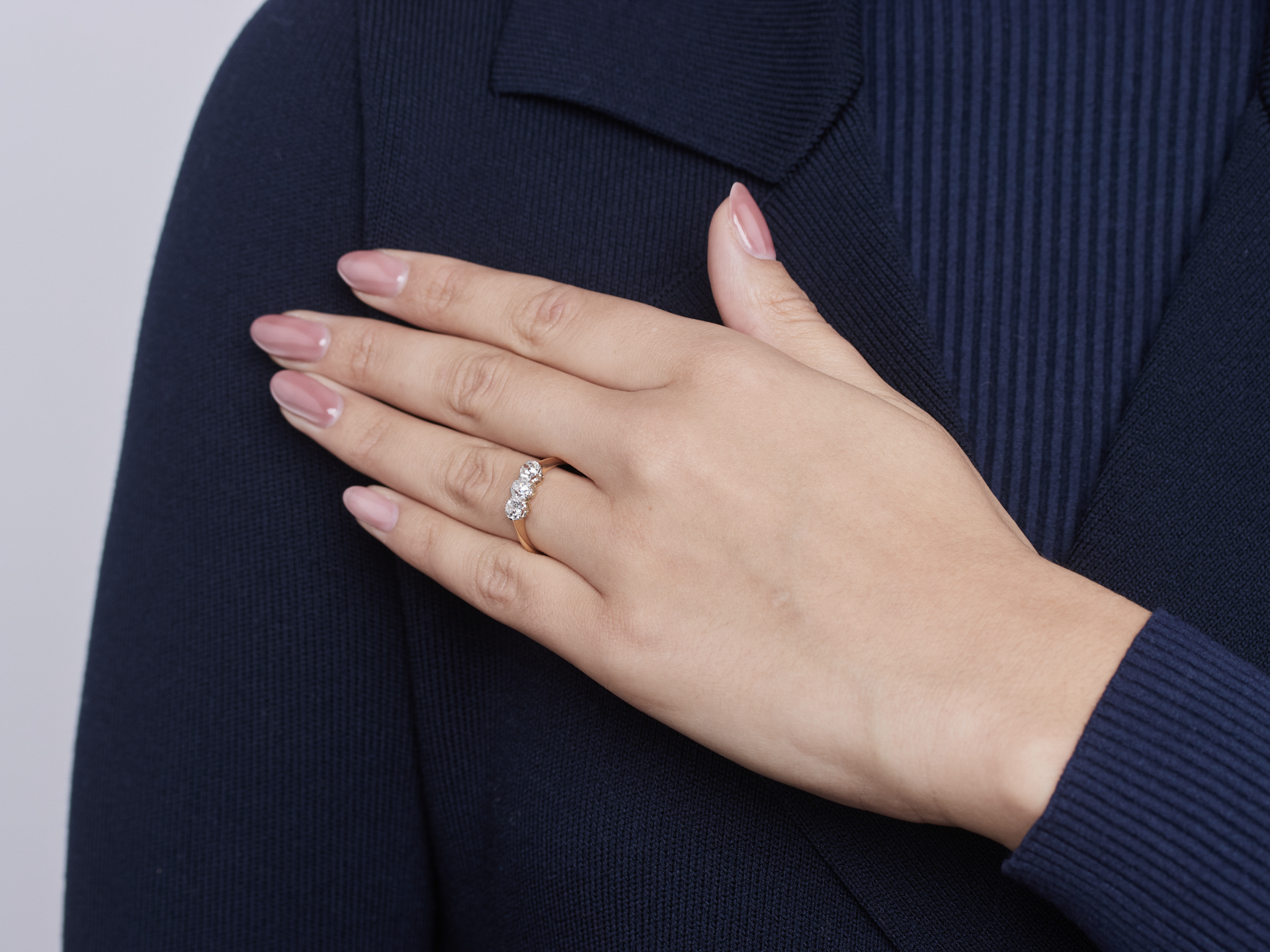 Edwardian diamond three stone ring, circa 1905.