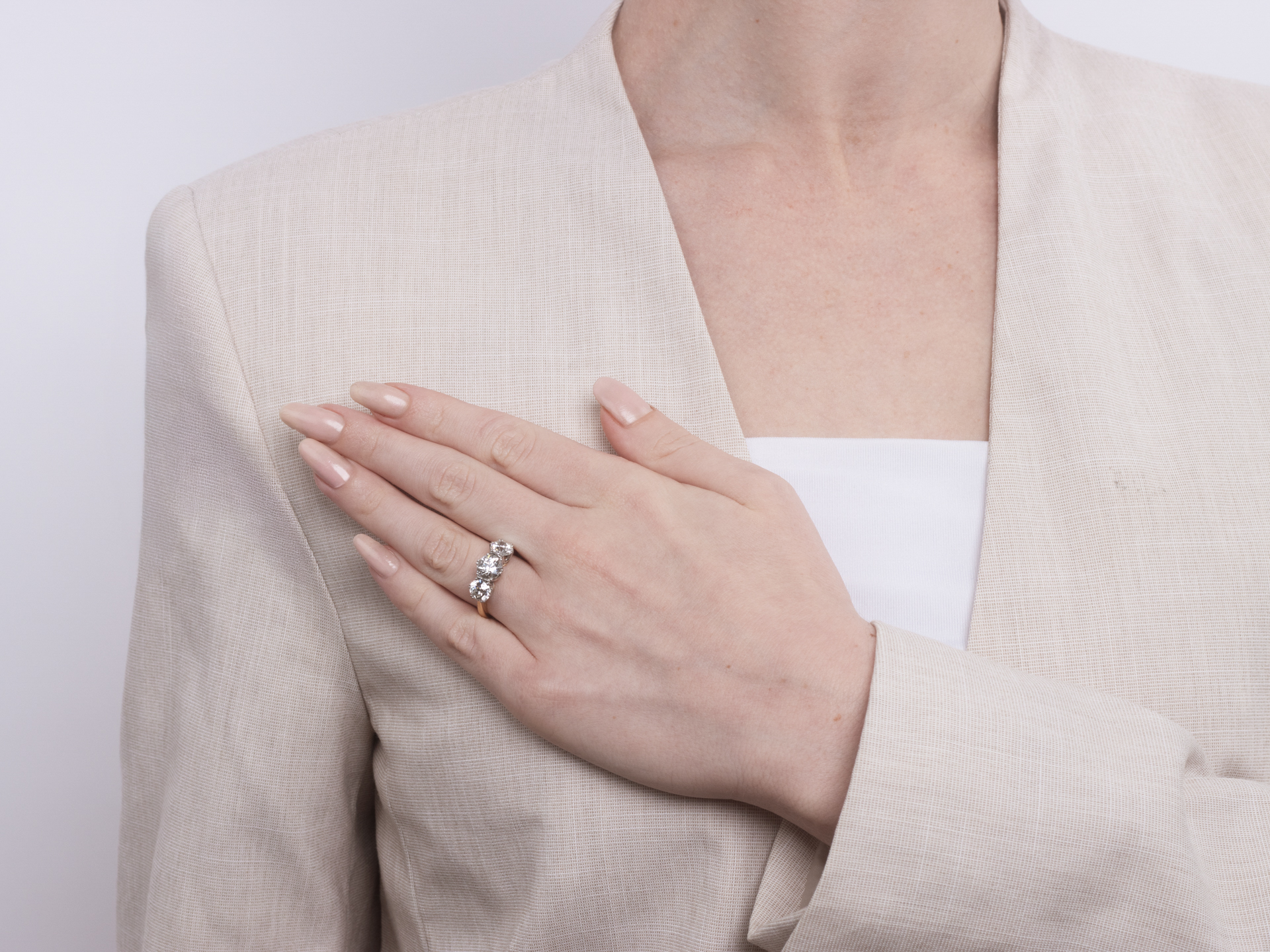 Edwardian diamond three stone ring, circa 1910.