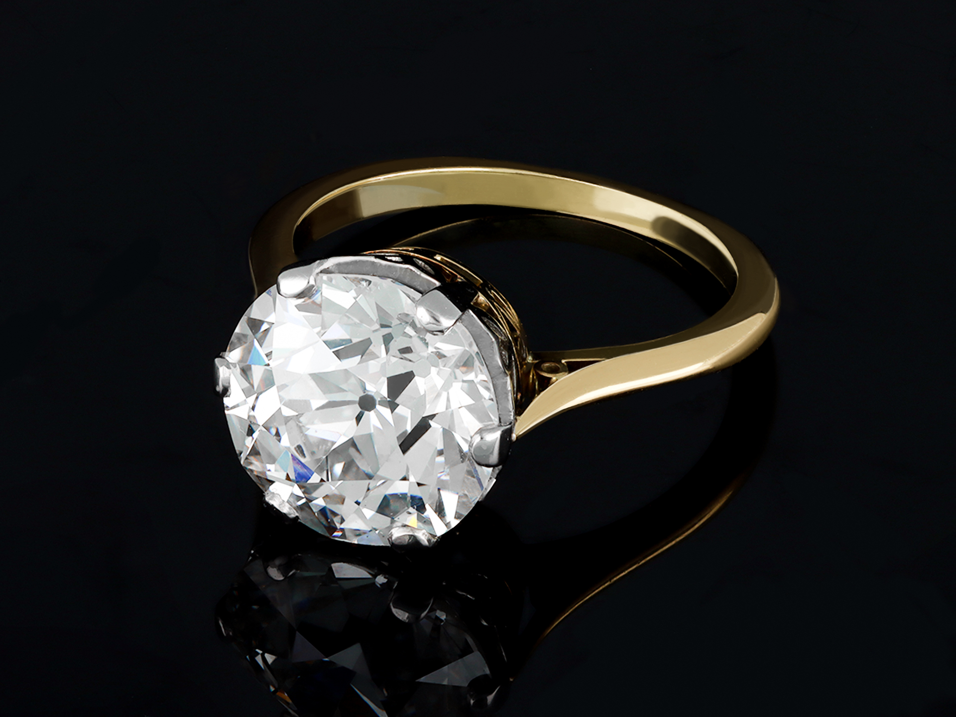 5.02 carat old cut diamond solitaire ring, circa 1910.