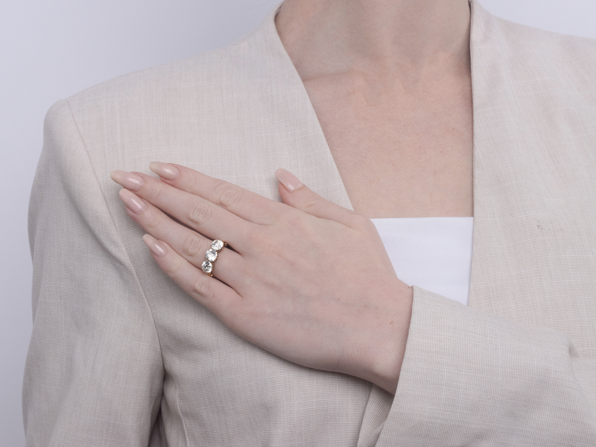 Old cut diamond three stone ring by Lawrence & Linguard, English, 1901.
