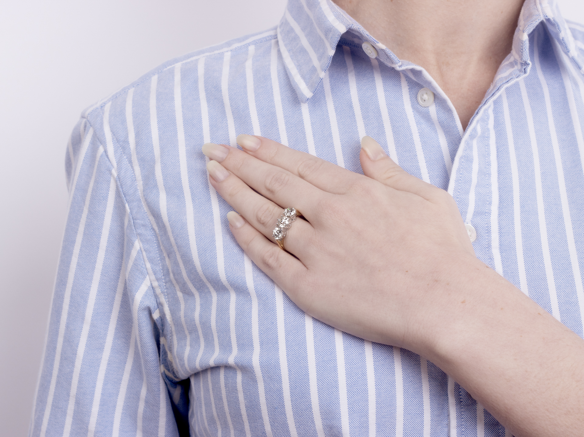 Old cut diamond three stone ring, circa 1950