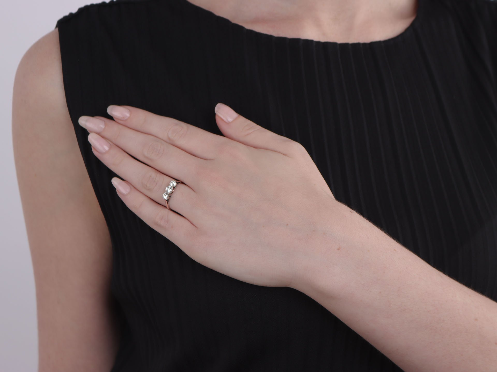 Old cut diamond three stone ring, circa 1910.