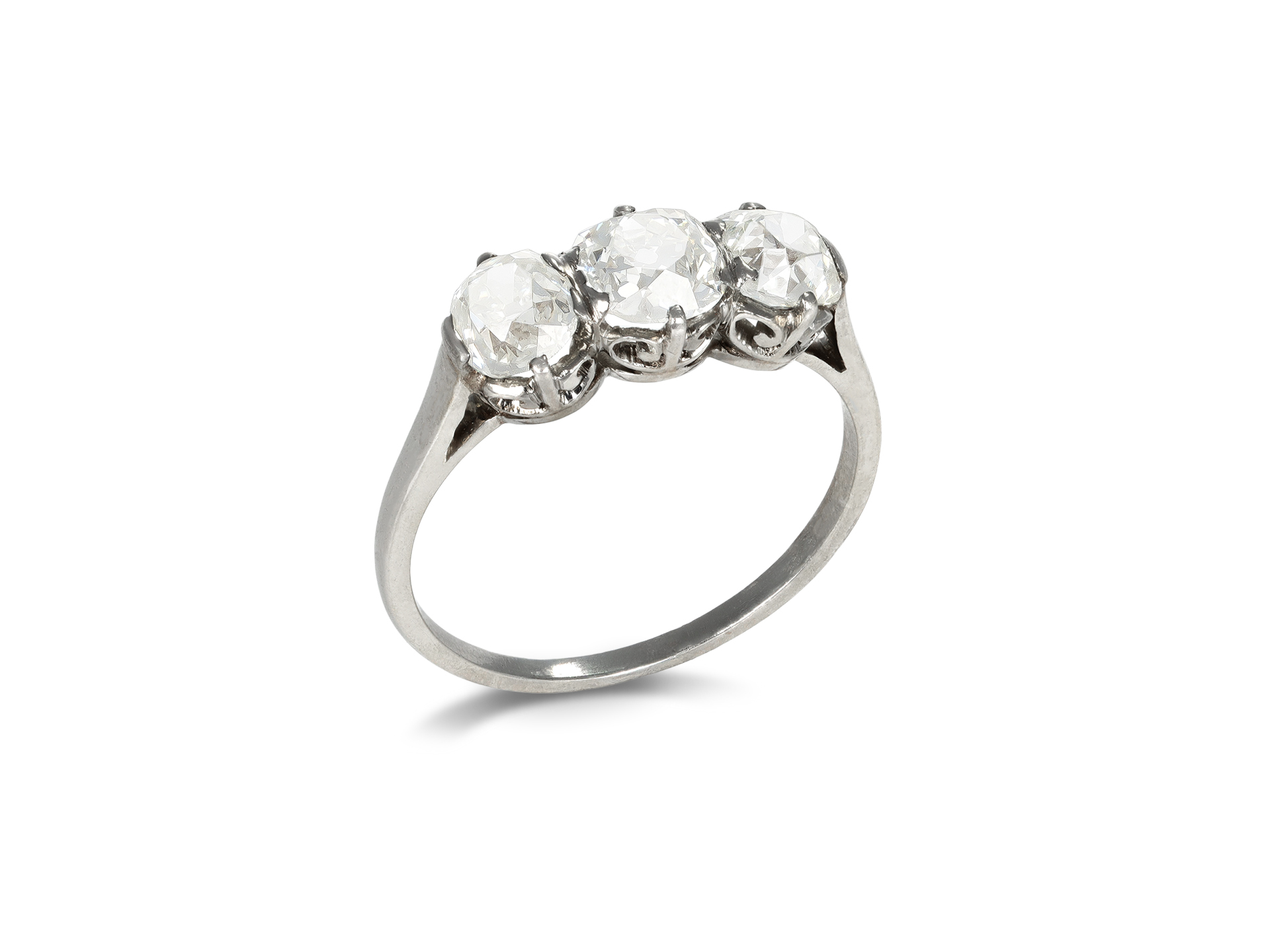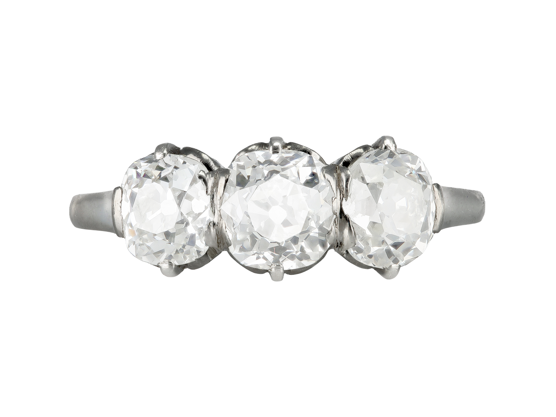 René Boivin old mine diamond three stone ring, French, circa 1910.