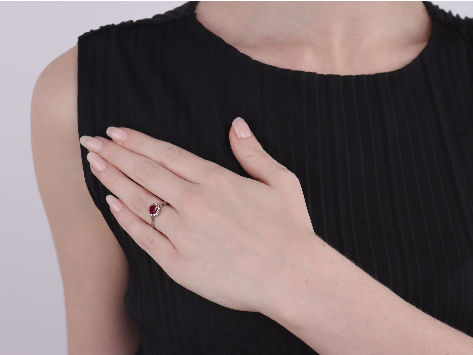 Gemstone Ruby, Old Cut, approximately 0.7ct 12 x Diamonds, Eight Cut, approximately 0.3ct total