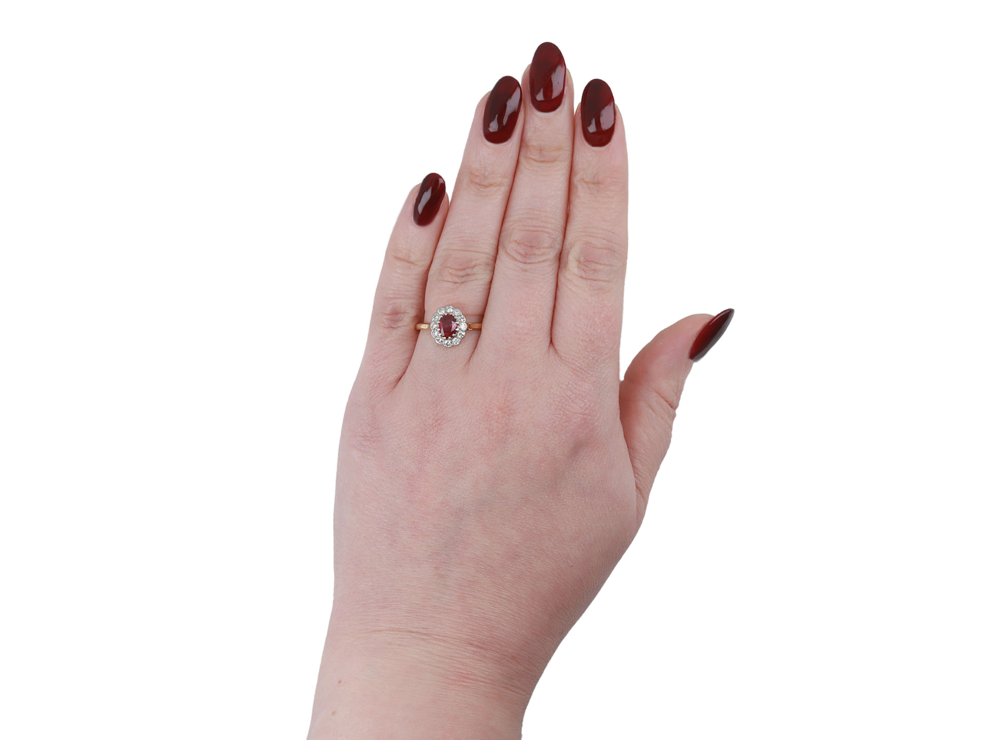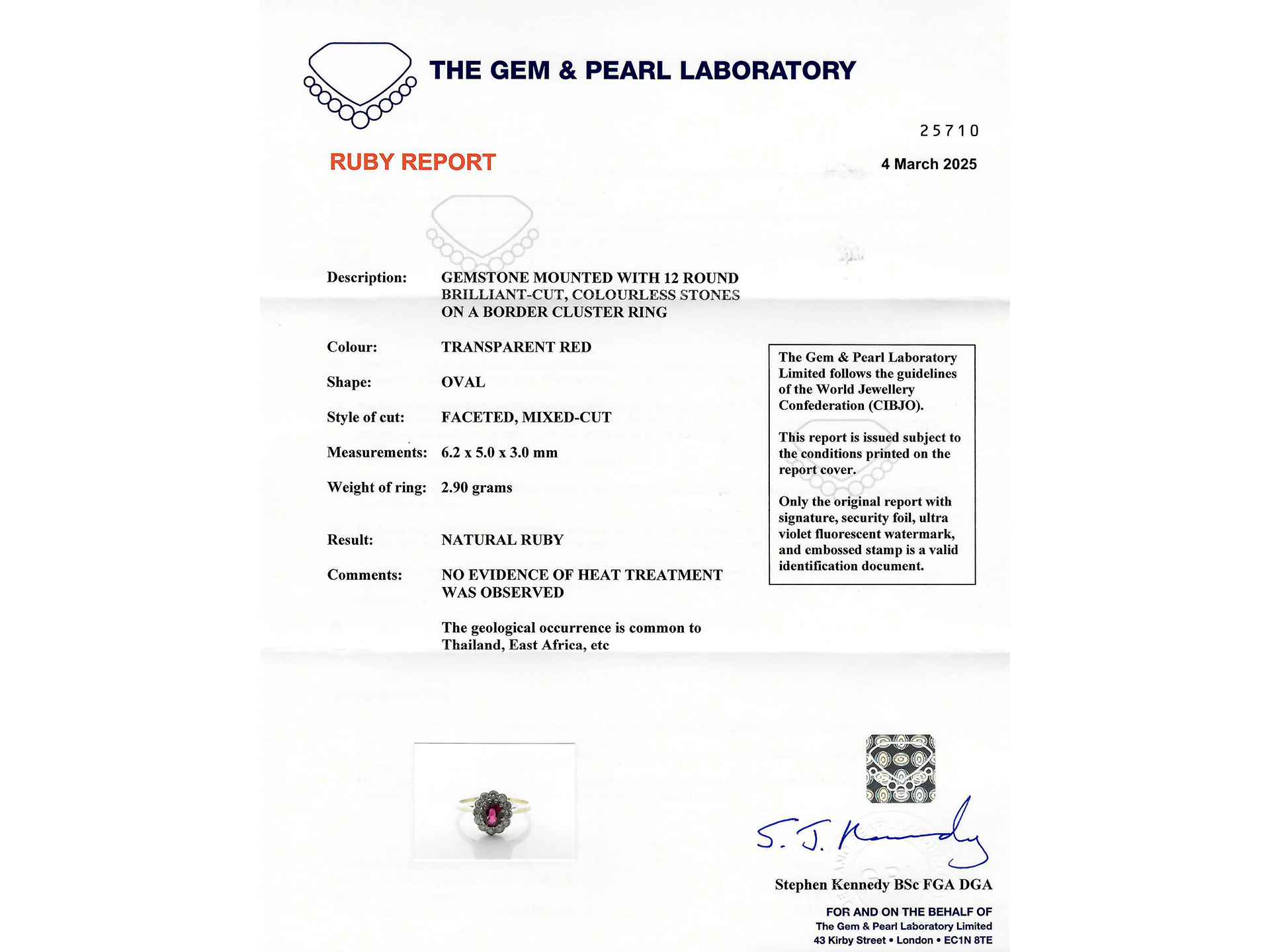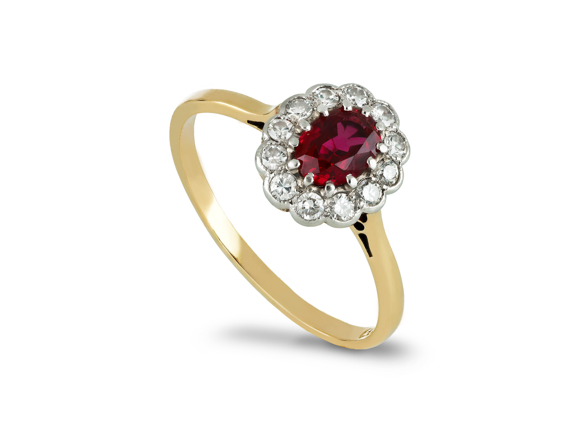 Gemstone Ruby, Old Cut, approximately 0.75ct 12 x Diamonds, Brilliant Cut, approximately 0.45ct total
