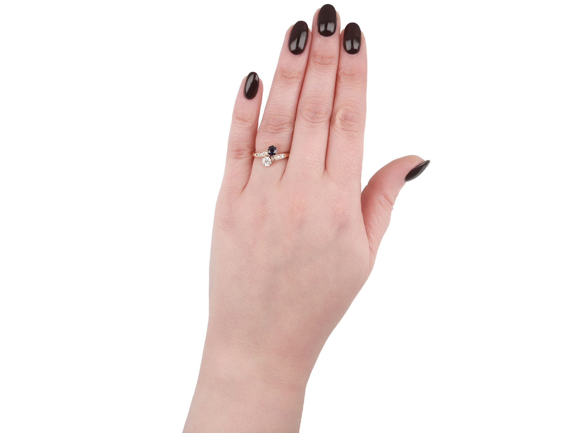 Sapphire and diamond crossover ring, Austro-Hungarian, circa 1910.