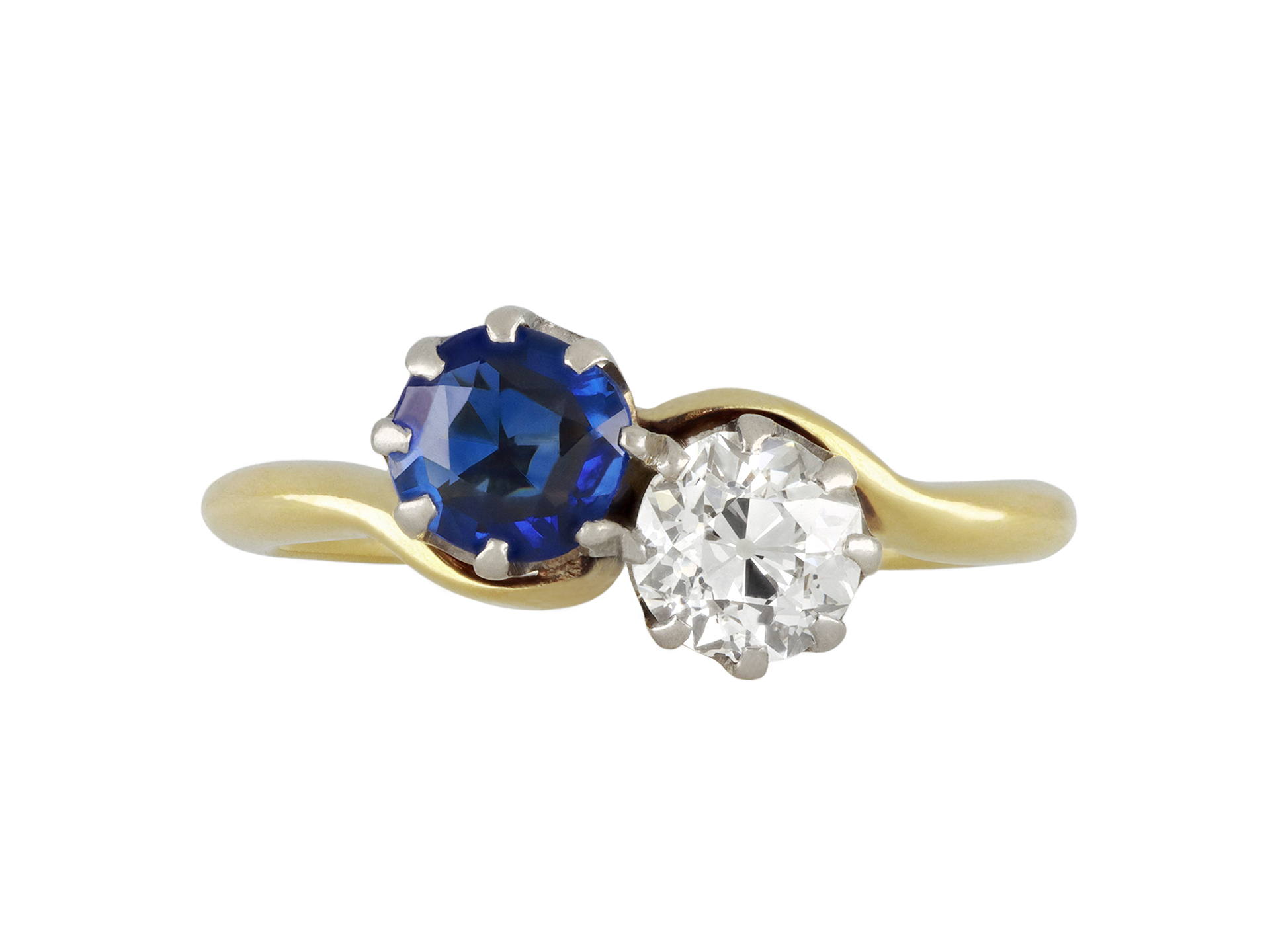 Gemstone Sapphire, Old Cut, approximately 0.55ct Diamond, Old Cut, approximately 0.65ct