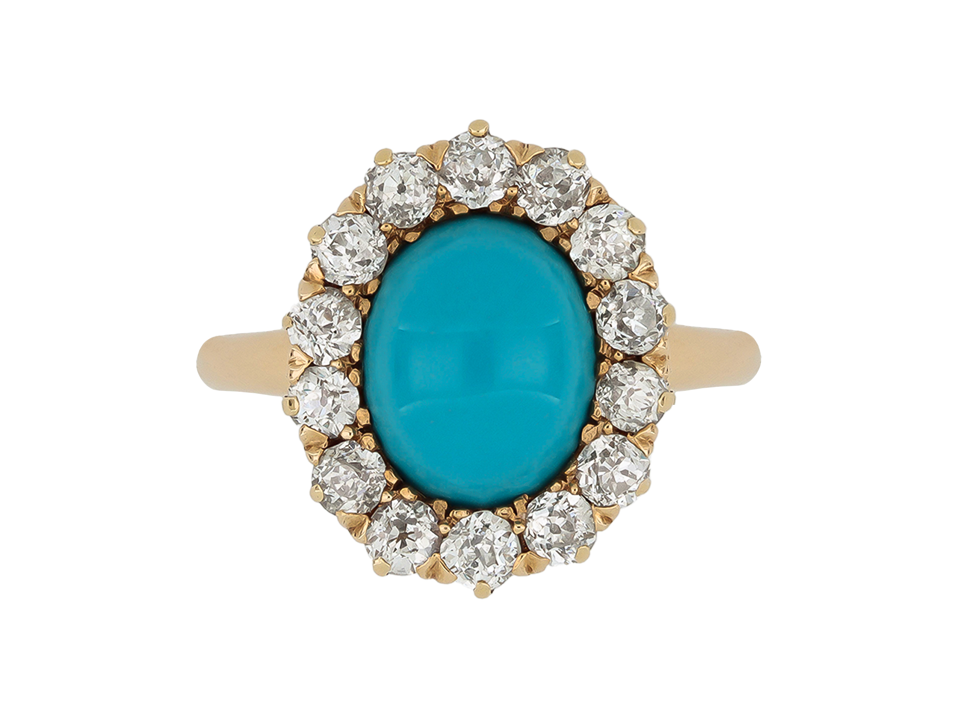 Victorian turquoise and diamond coronet cluster ring, circa 1880.