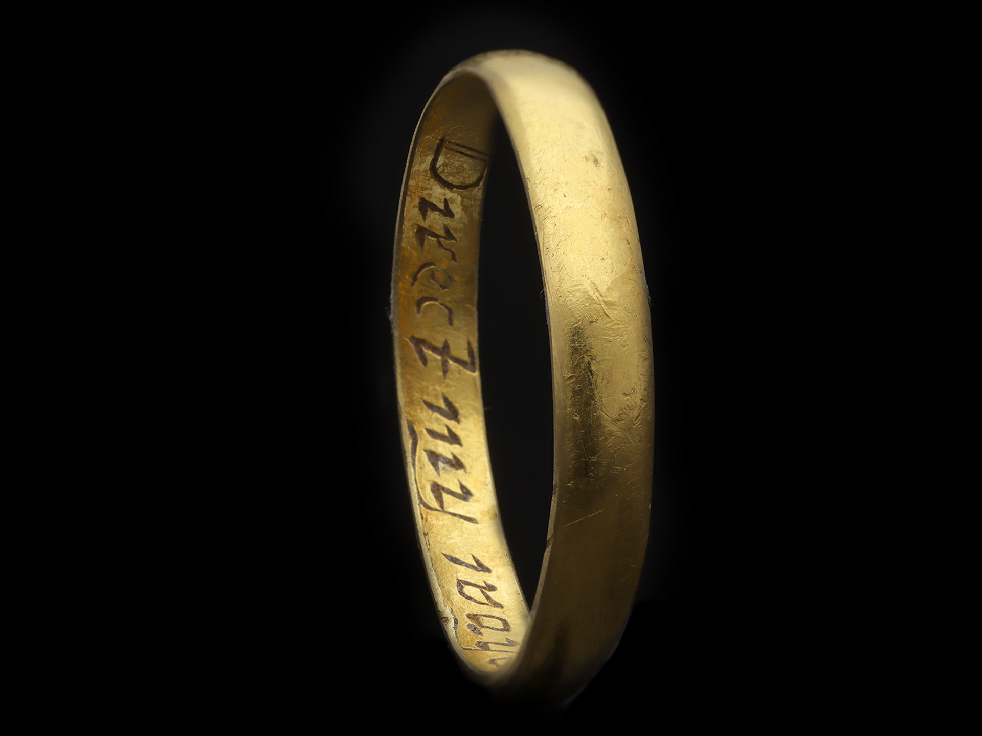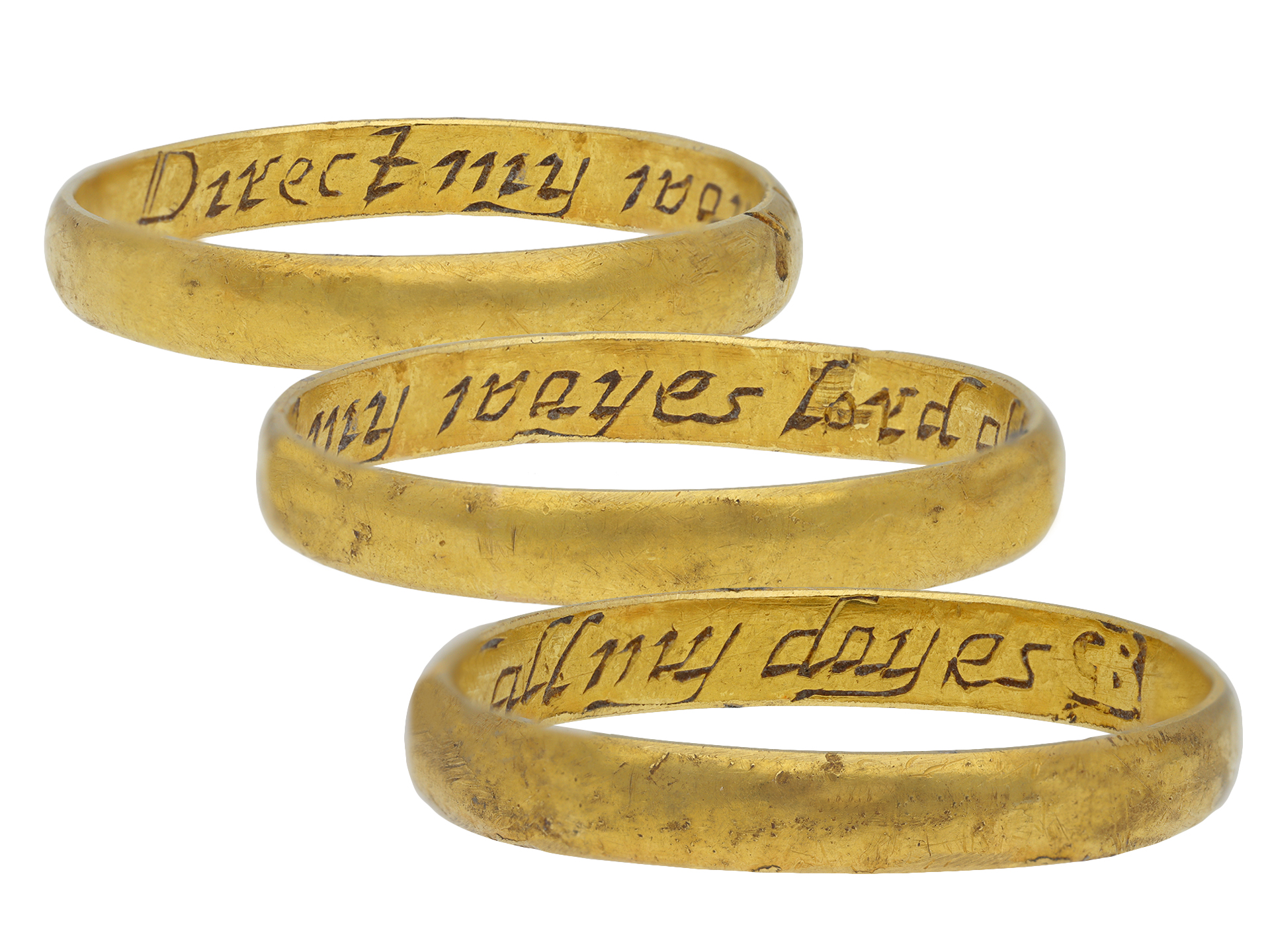 Gold posy ring, 'Direct my wayes Lord all my dayes', late 18th century.