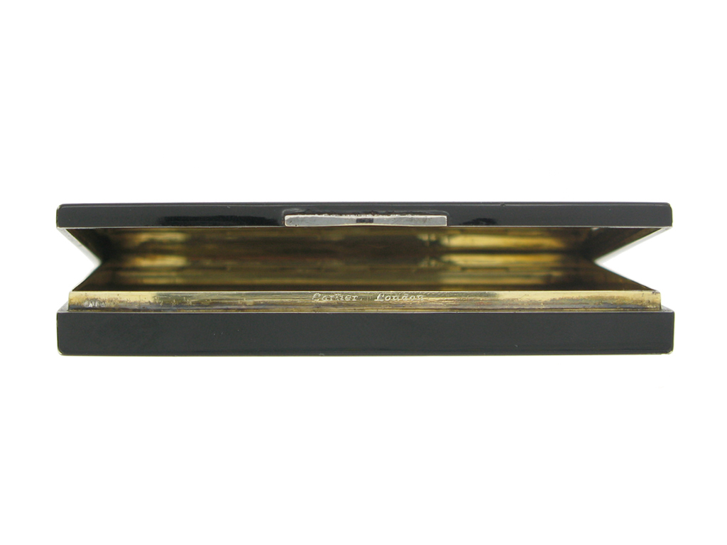 Cartier London black enamel and diamond set card case, English, circa 1936.
