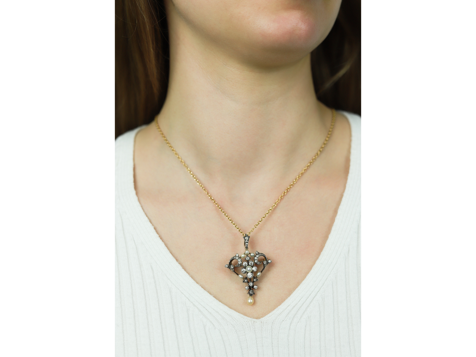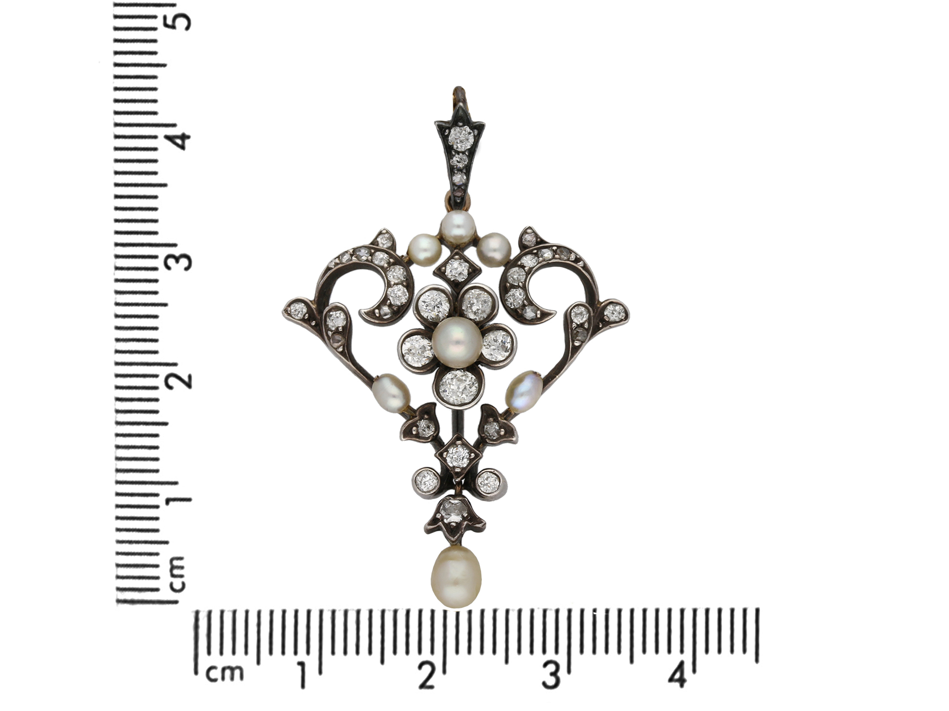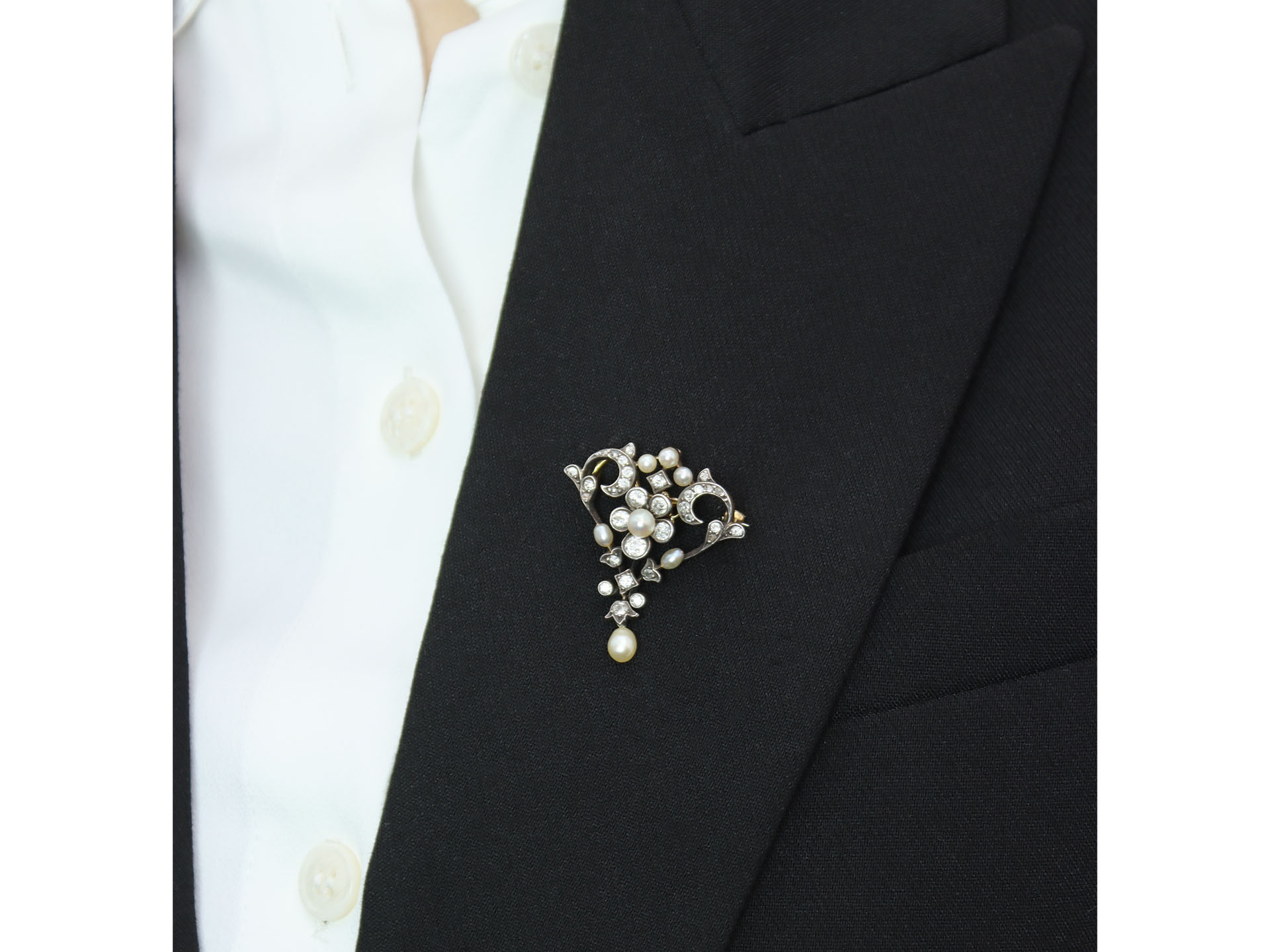 Gass & Co. pearl and diamond pendant/brooch, English, circa 1900.