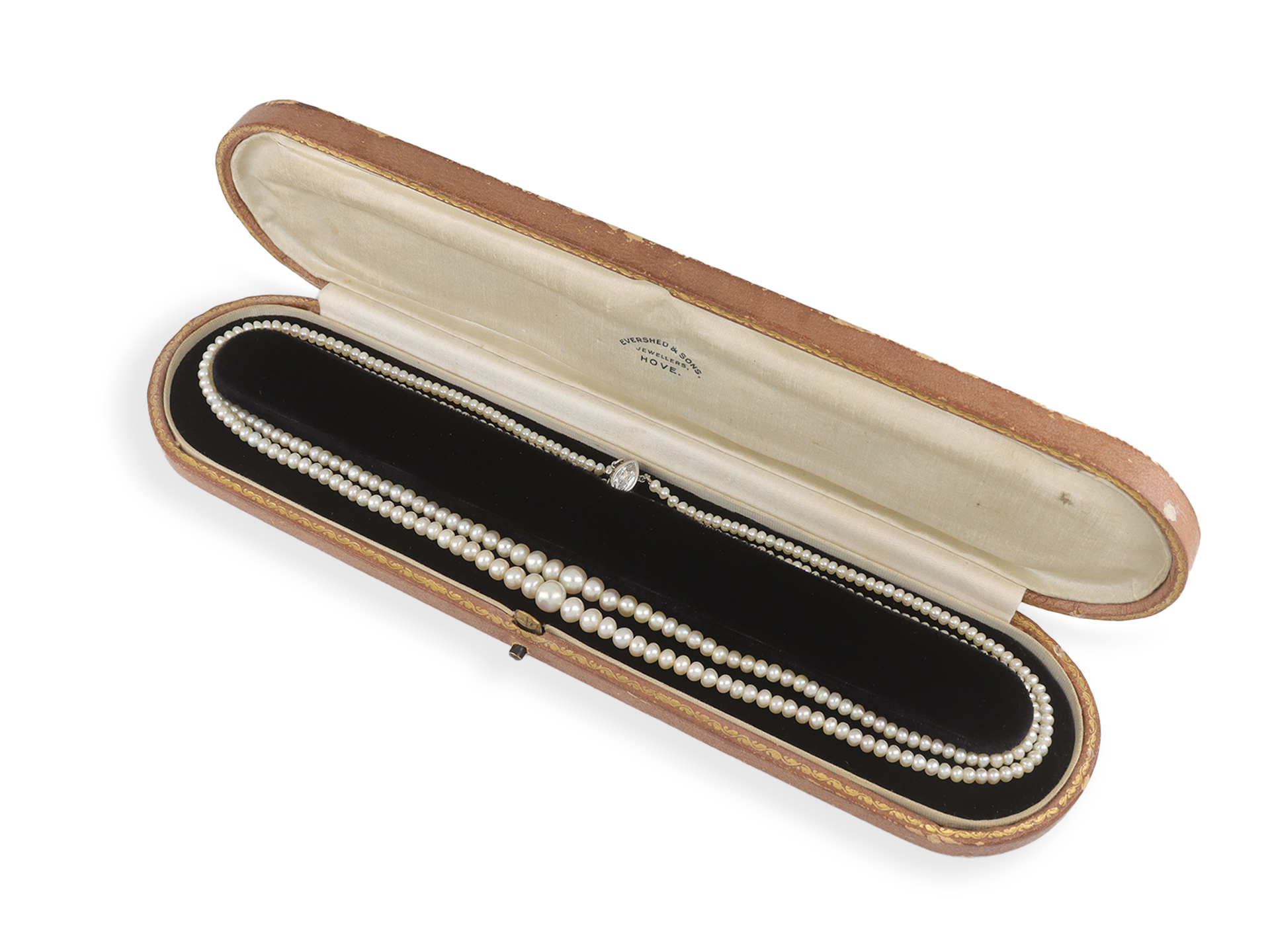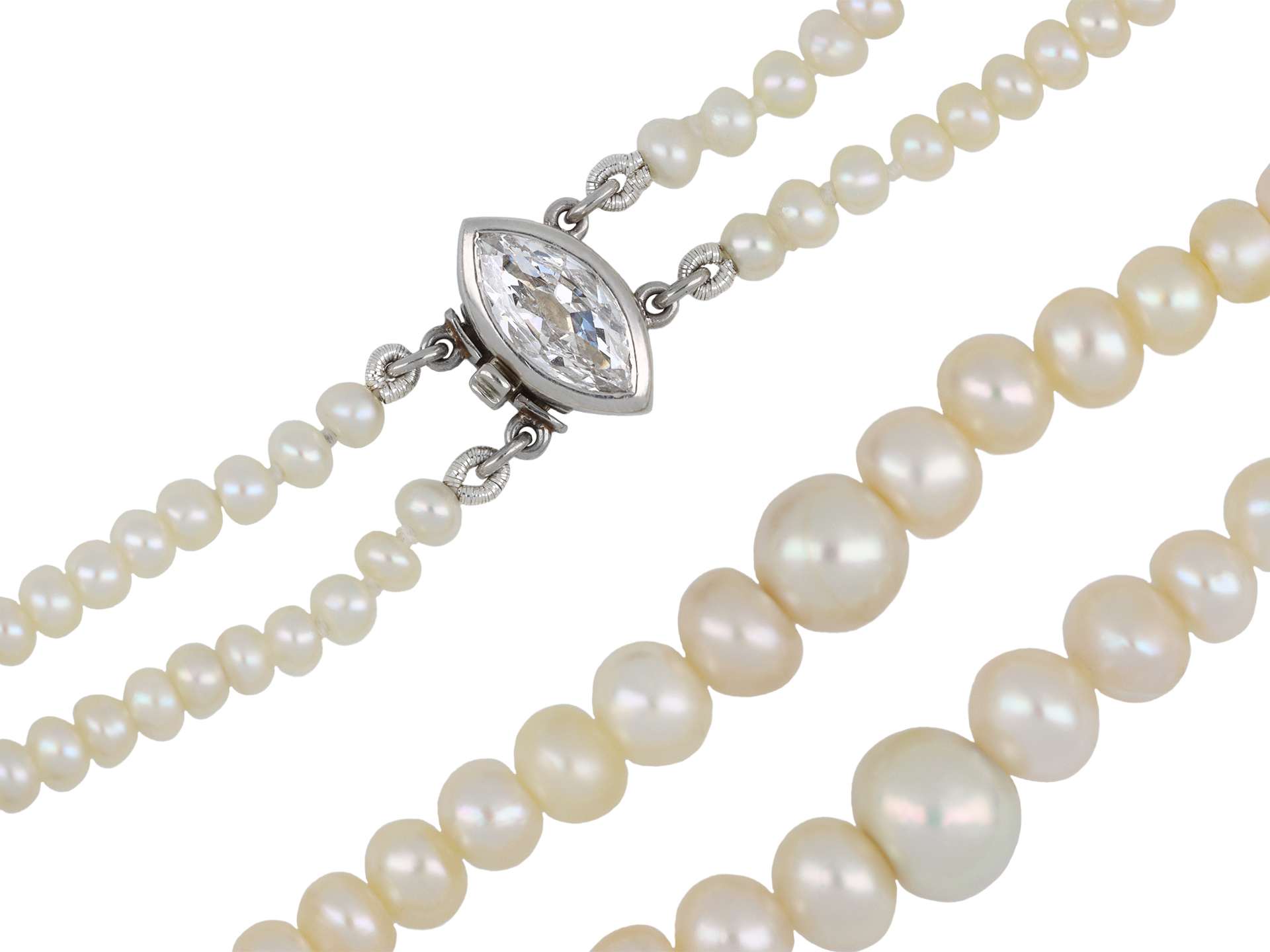 Marcus & Co. natural pearl and diamond necklace, circa 1915.