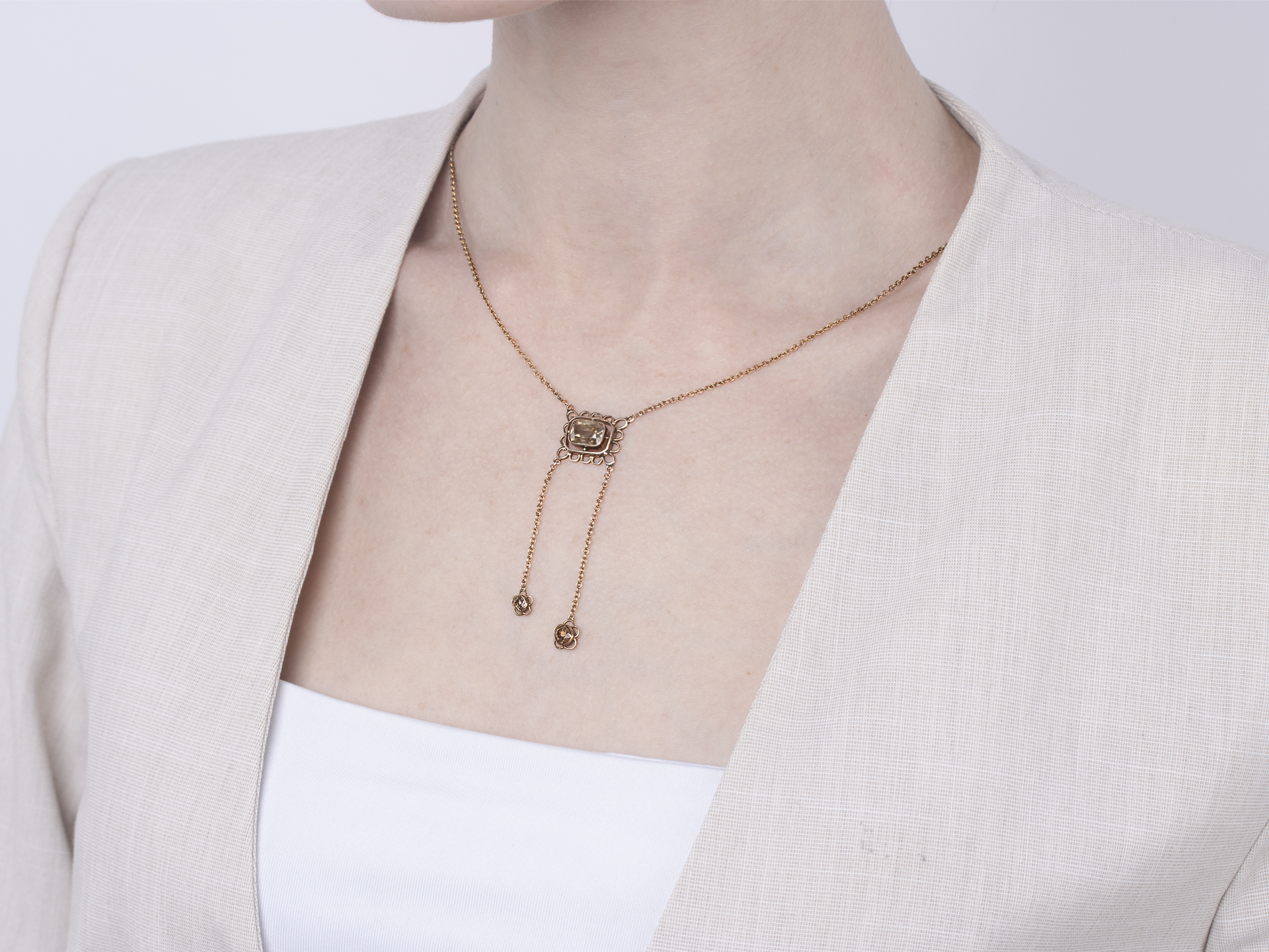 Fancy brown yellow diamond negligee pendant, circa 1915.