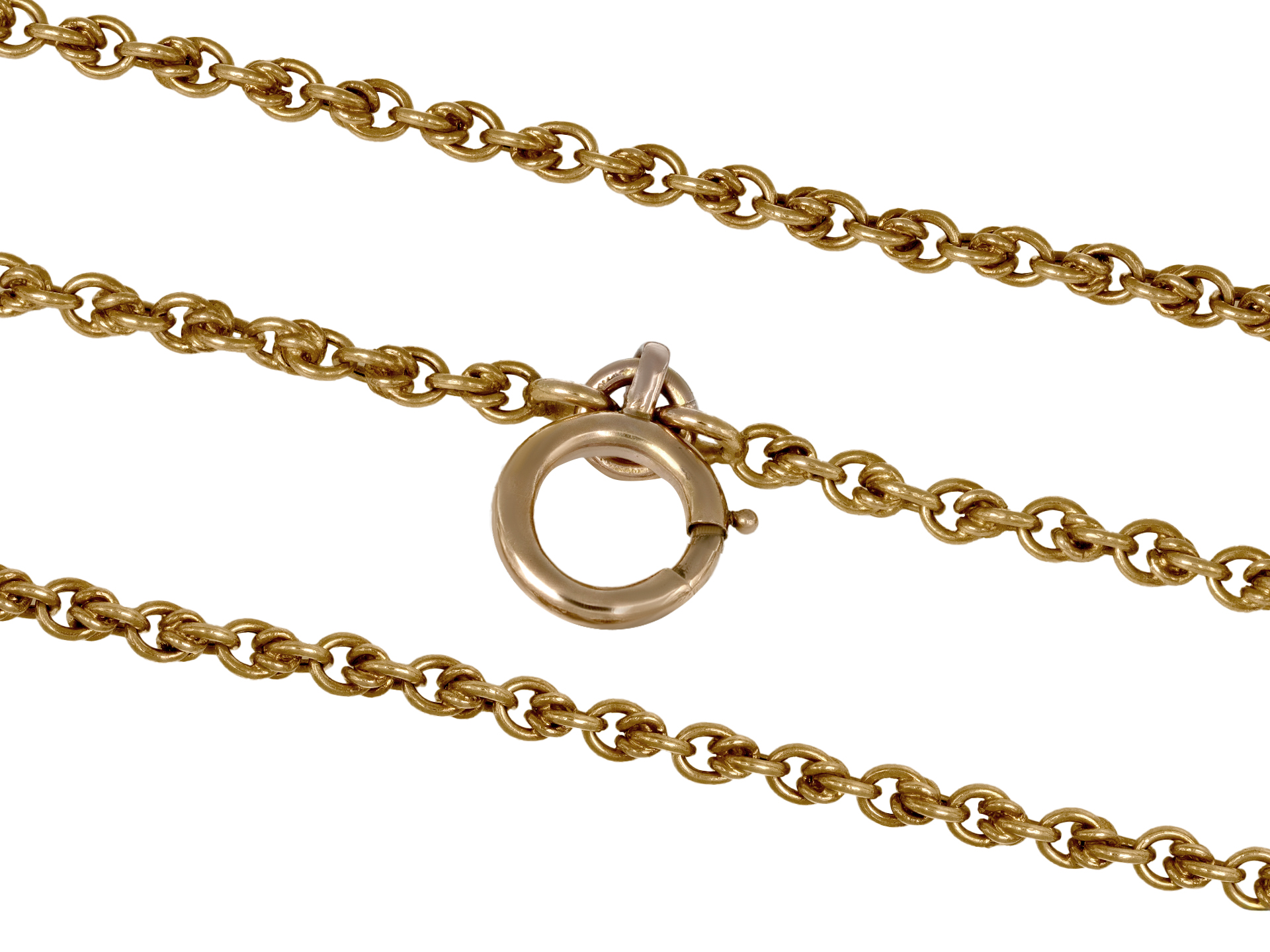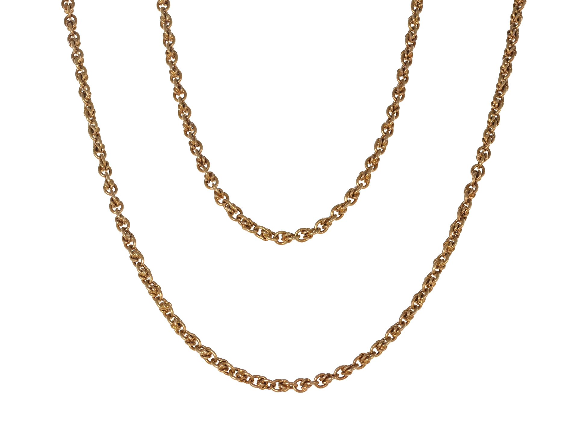 Yellow gold longuard chain, French, circa 1900.