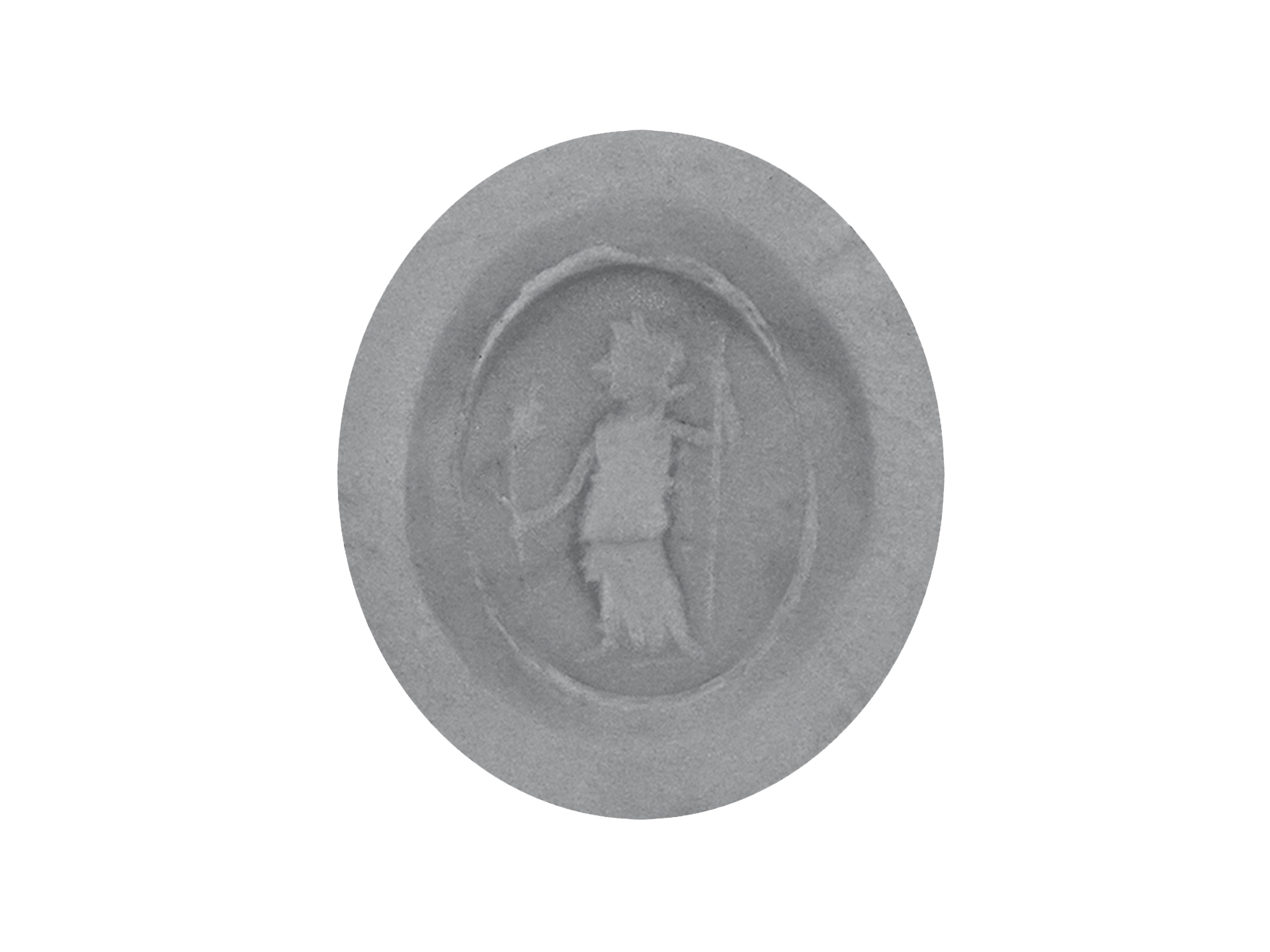Minerva was the Roman goddess of wisdom, justice and war and is often depicted holding a spear and shield. Her image was a popular choice for intaglio rings, serving as both an amulet of protection and a declaration of intellectual and martial prowess. Minerva was also the sponsor of the arts, trade and strategy. Minerva is the Roman equivalent of the Greek goddess Athena.