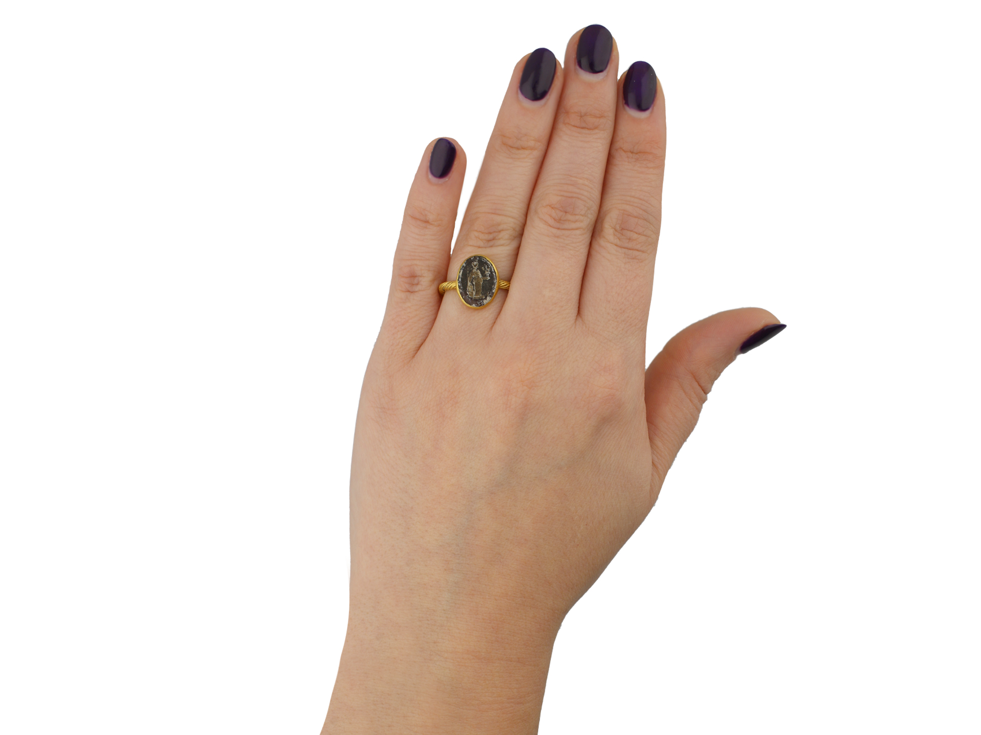 Ancient Roman goddess Minerva intaglio ring, circa 2nd-3rd century AD.