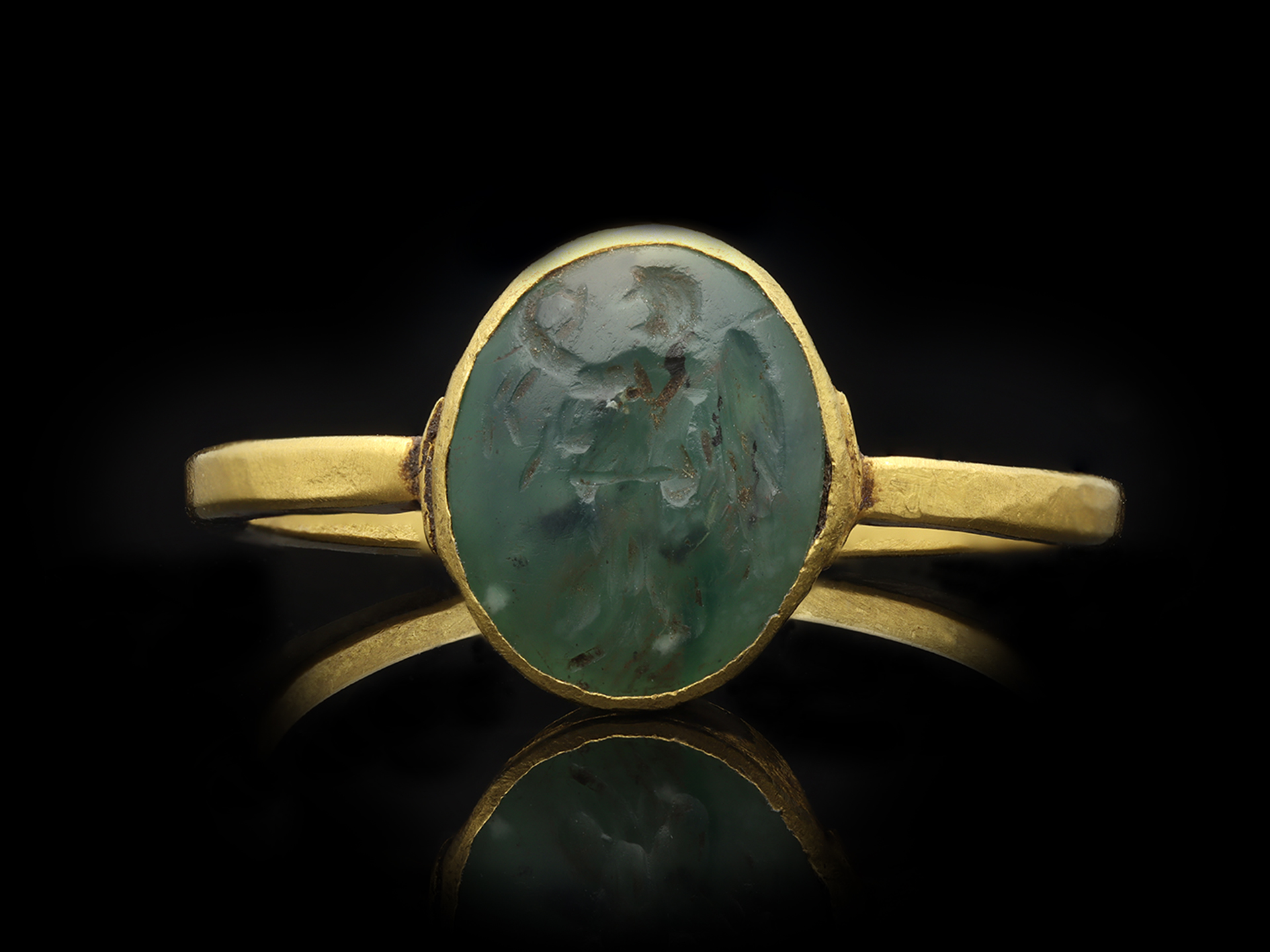 Ancient Roman signet ring engraved with Victory, circa 2nd century AD.