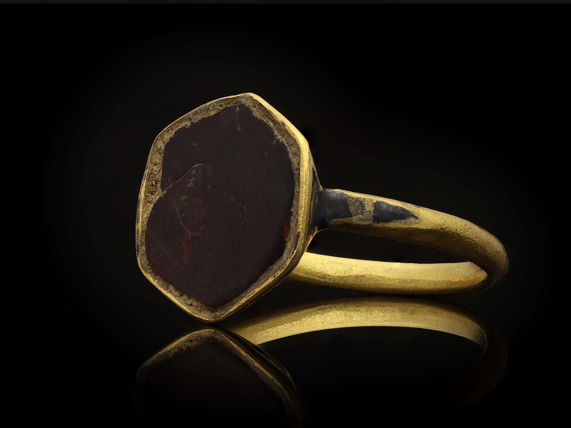 Byzantine garnet and enamel ring, circa 6th-9th century.