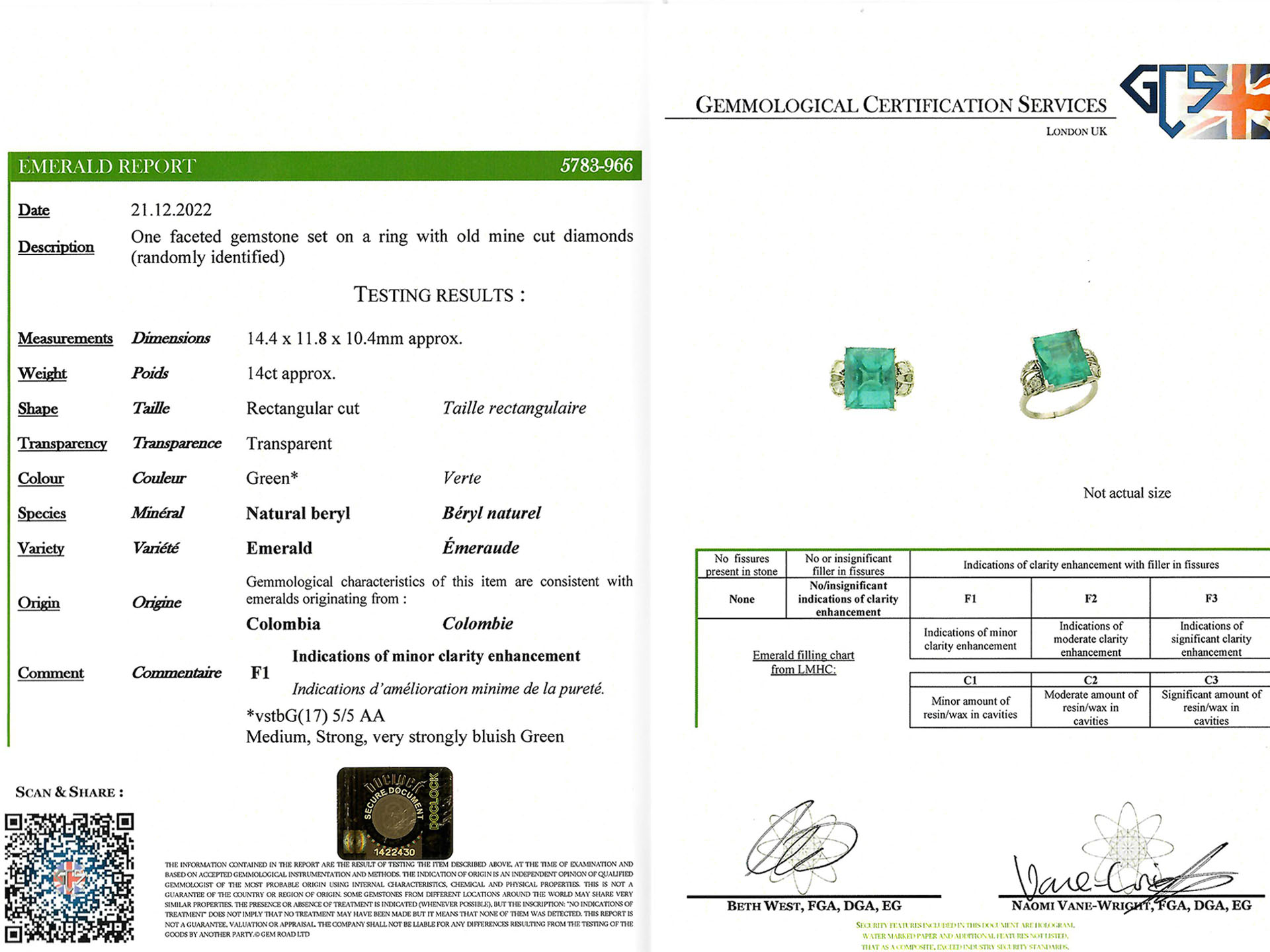 Gemstone Colombian Minor Oil Emerald, Emerald Cut, approximately 14ct 14 x Diamonds, Old Mine, approximately 1.15ct total