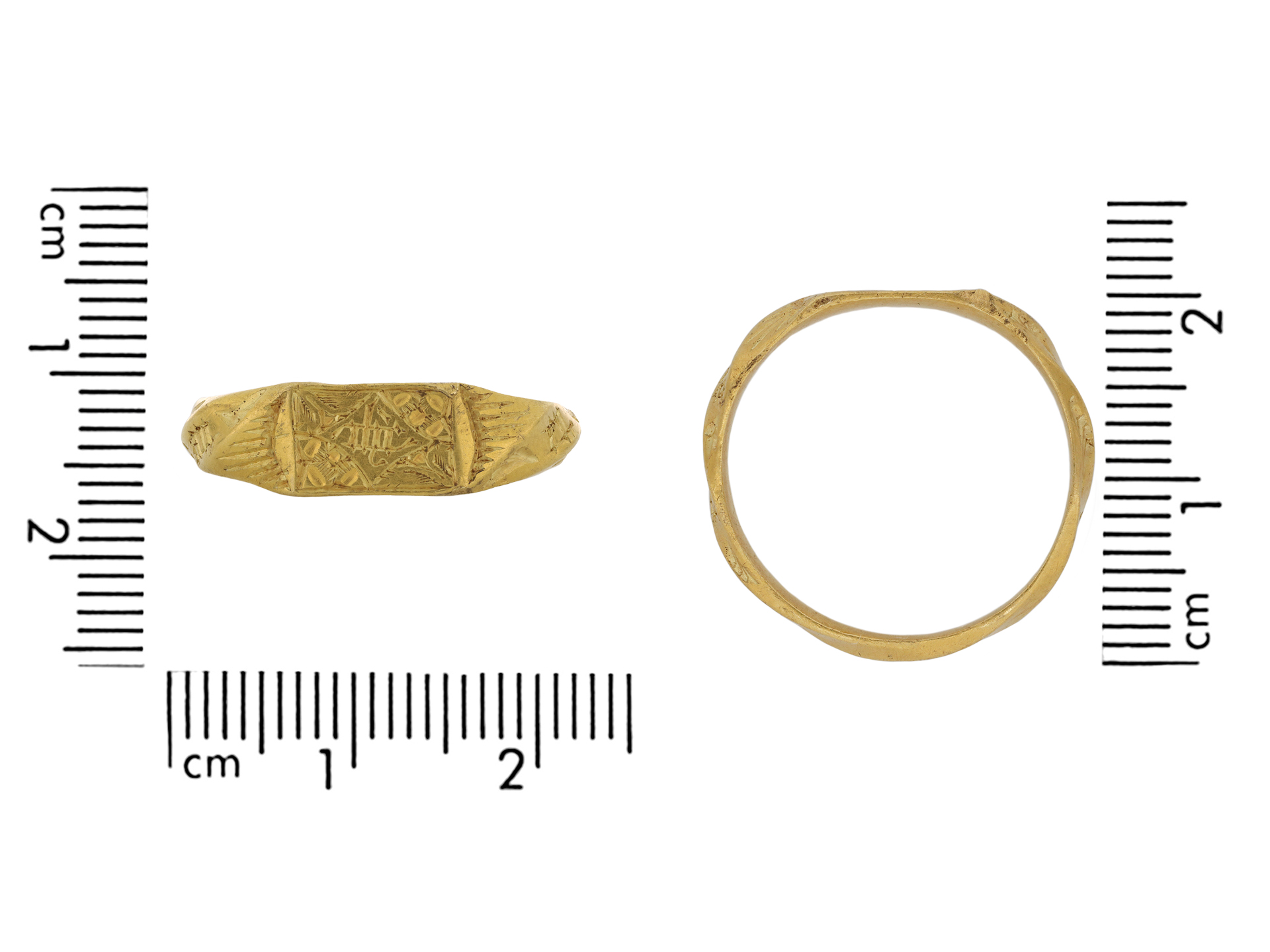 This ring was discovered in 2019 at Roxwell, near Chelmsford, Essex. The ring has been disclaimed under the Treasure Act, 1996, and is documented under the Portable Antiquities Scheme ref ESS-B1E831.