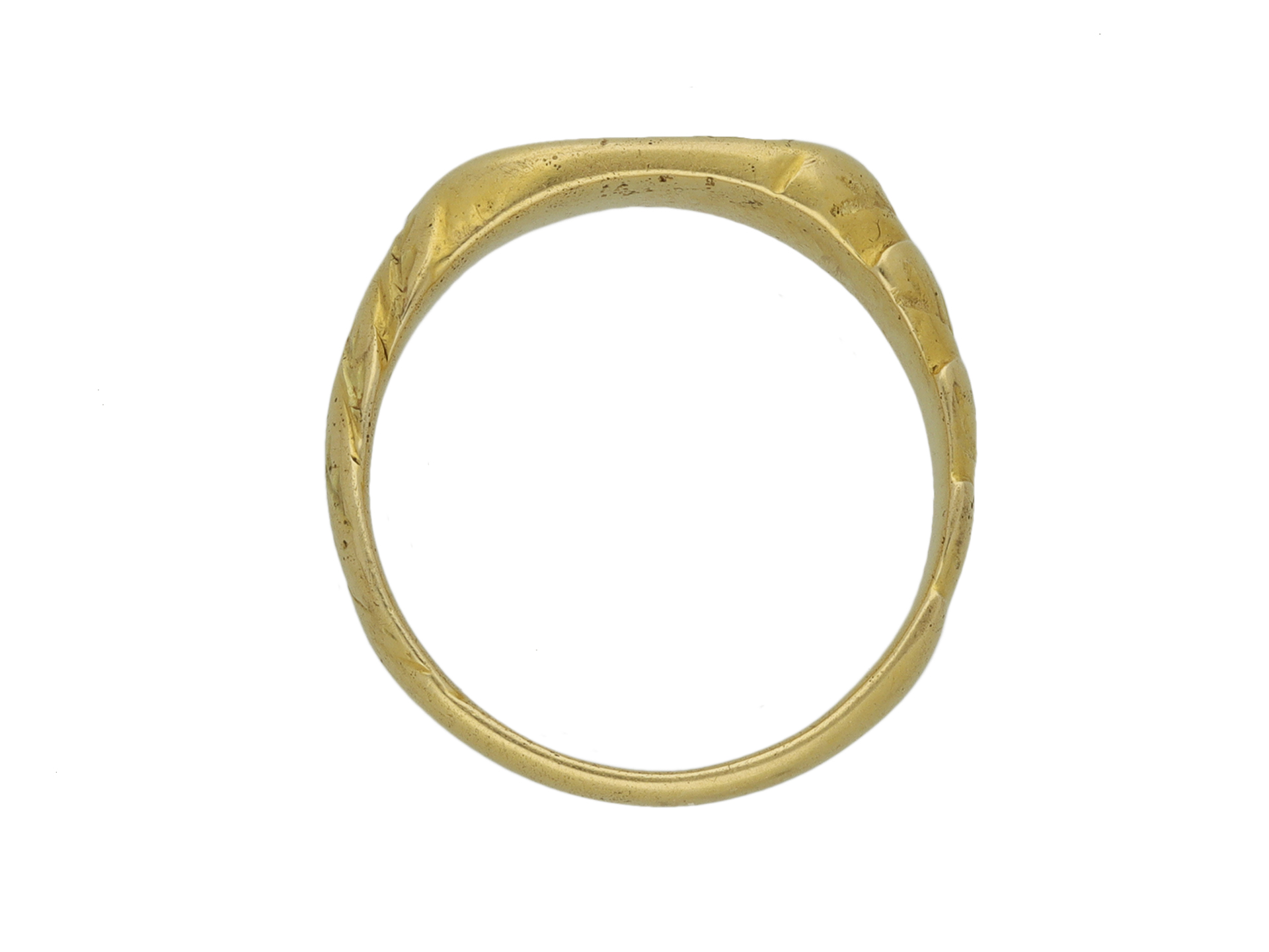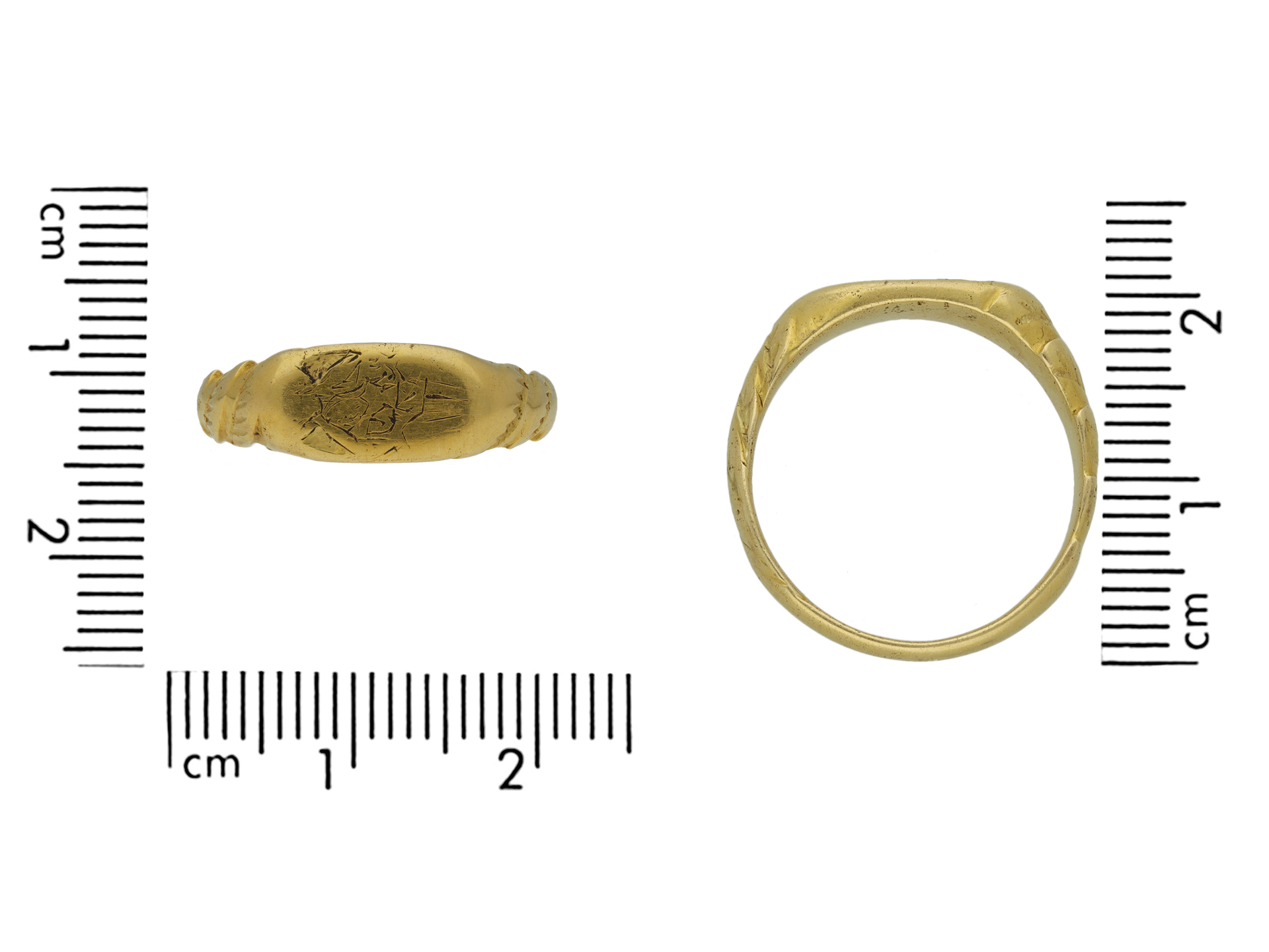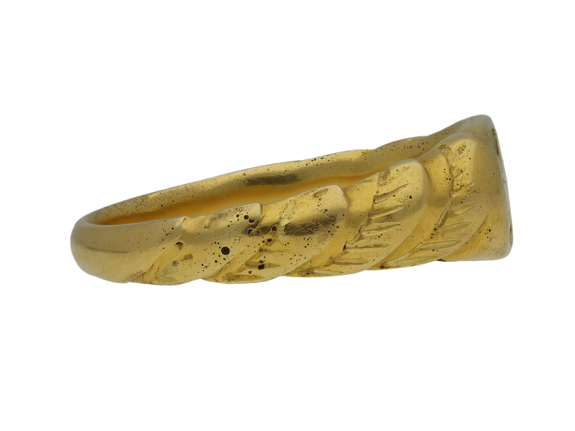 Accompanied by documentation from the Portable Antiquities Scheme stating that this ring was found whilst metal detecting cultivated land in Fleet, Lincolnshire in March 2009. It is recorded with the Portable Antiquities Scheme under reference number LIN-A52493 and has been declared under the Treasure Act, reference number 2009 T140.