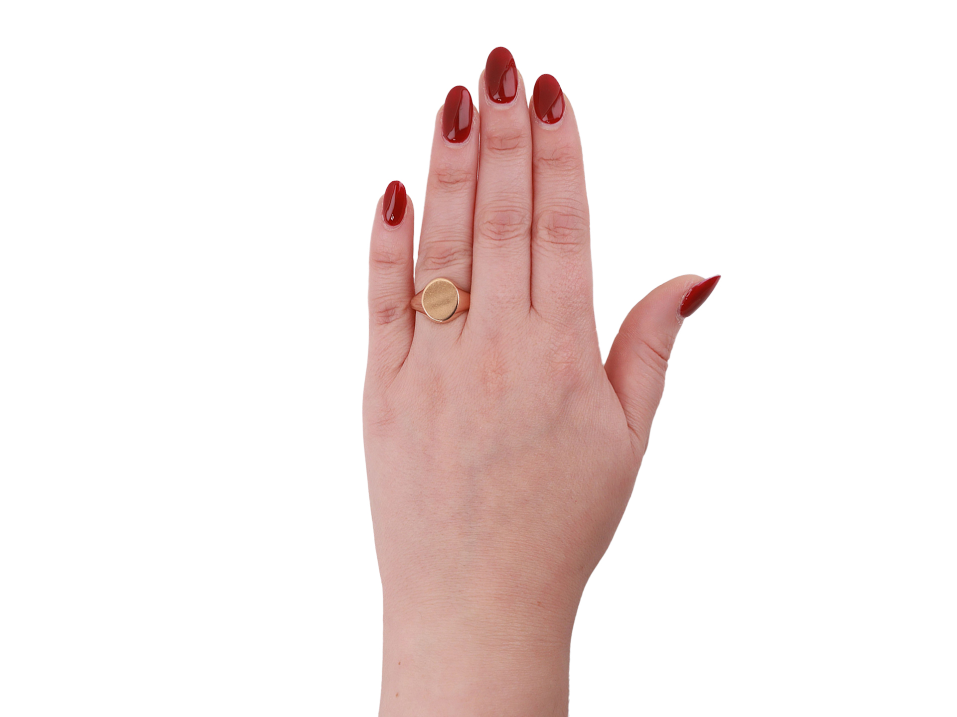 Rose gold signet ring.