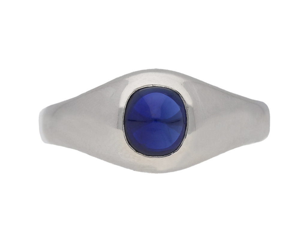 S. Kind & Sons sugarloaf cabochon sapphire ring, circa 1935.