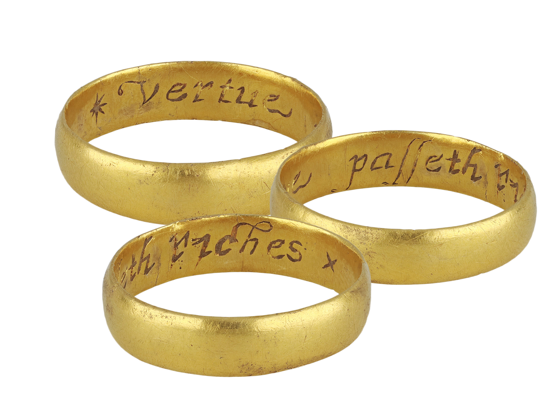 Stuart gold posy ring 'Vertue passeth riches', circa 17th century.