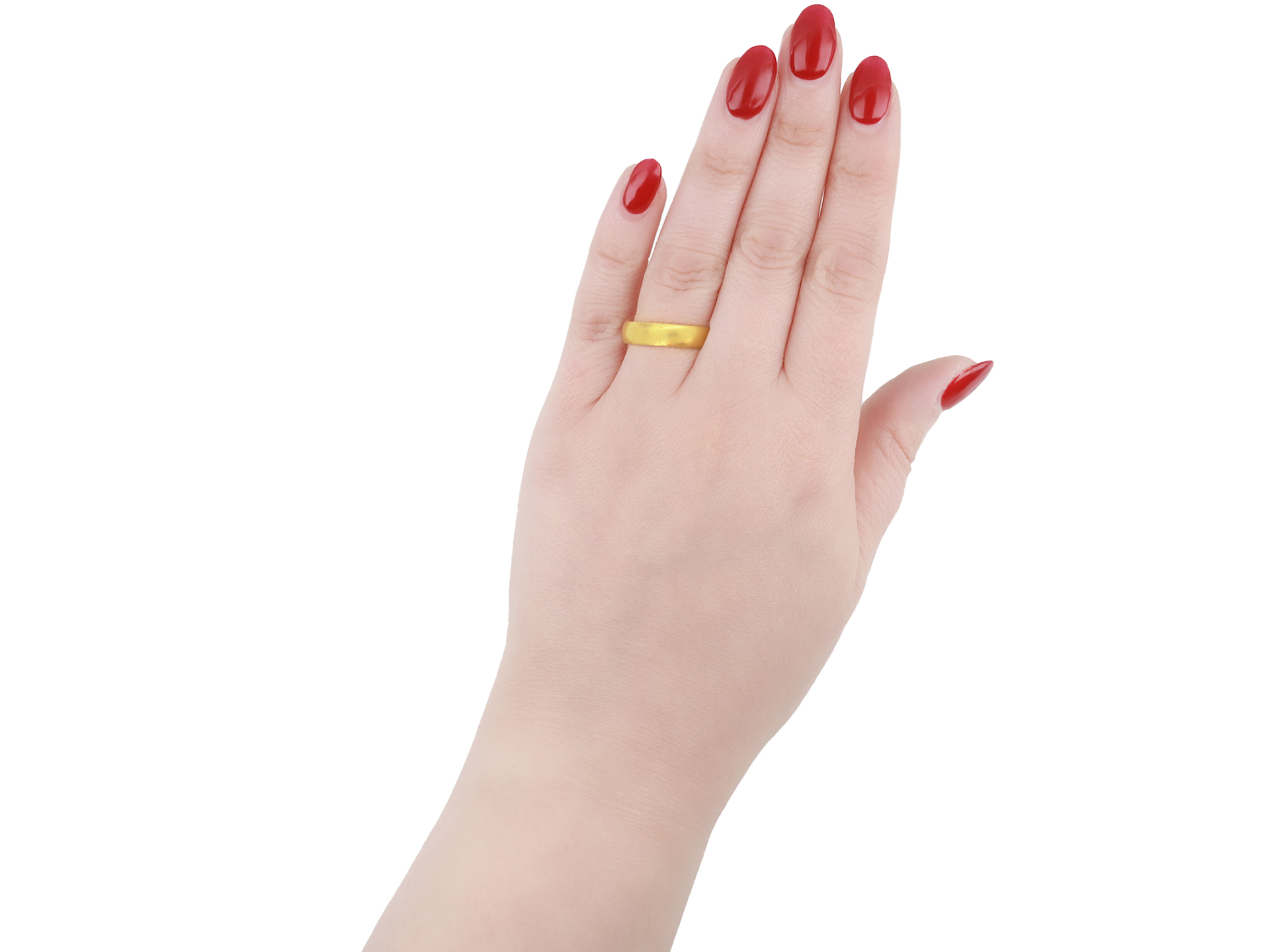Stuart gold posy ring 'Vertue passeth riches'. A smoothly conforming shallow D-shape band, engraved to the interior in florid italic script '* Vertue passeth riches x', approximately 4.6mm in width. Tested yellow gold, approximately 3.6 grams in weight, circa 17th century.
