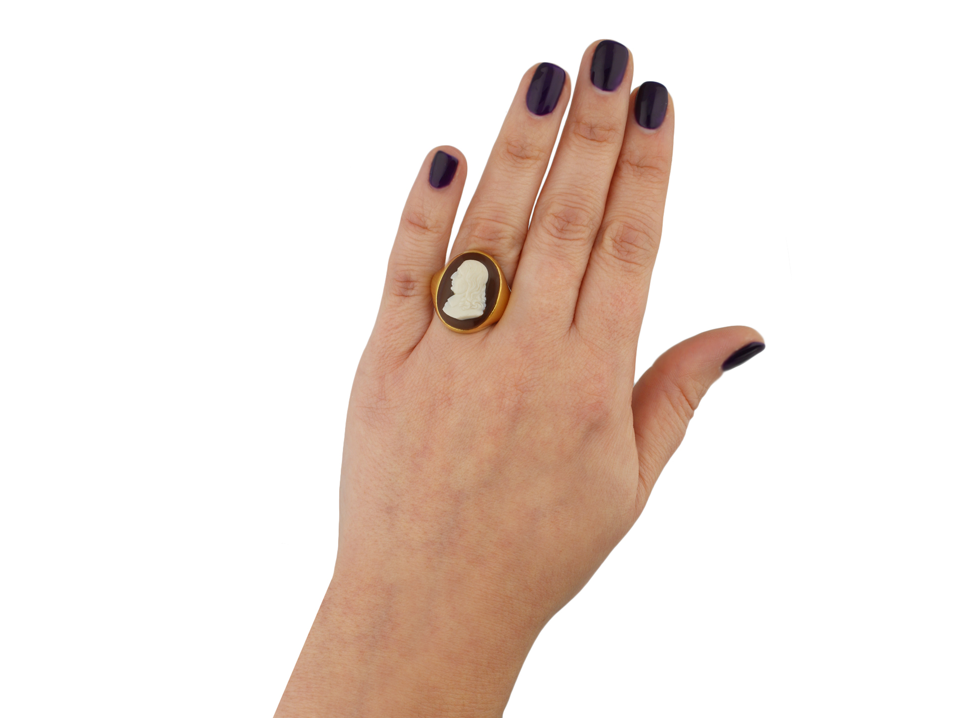 Stuart sardonyx cameo of John Milton mounted in a Victorian gold ring, English, circa 1901.