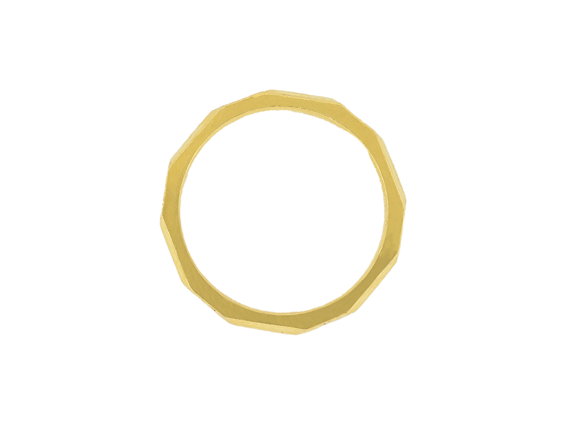 Yellow gold engraved wedding band. An angular wedding band, faceted around the full circumference, each panel finely engraved with a repeating stylised foliate and linear design, approximately 2.3mm in width. Makers mark 'W&A.G', marked 22 carat yellow gold, approximately 3.69 grams in weight, full hallmarks for London, English, circa 1940.