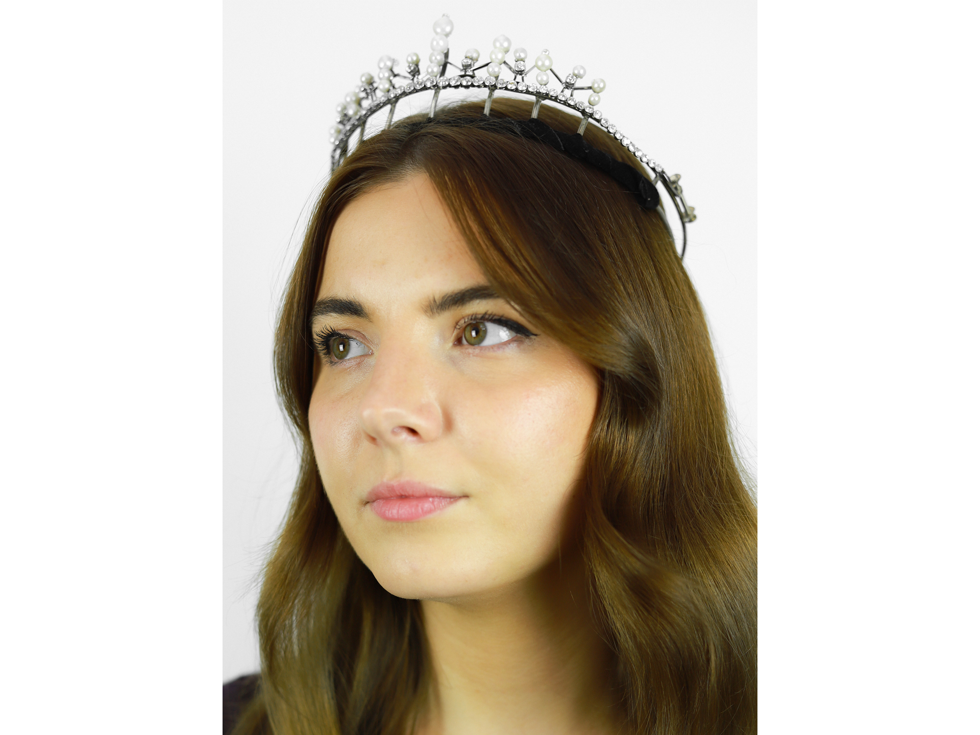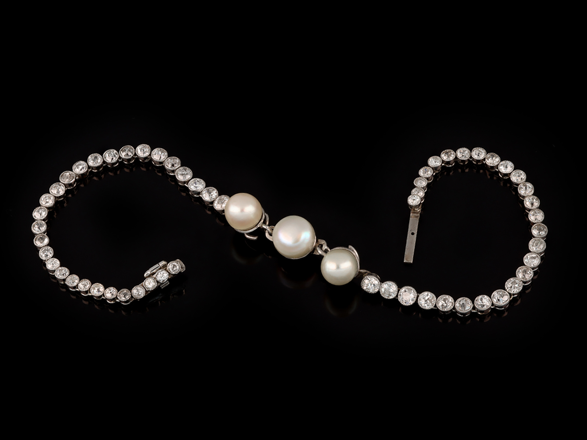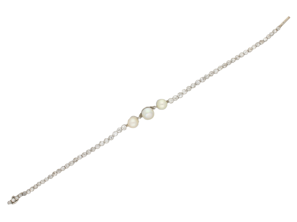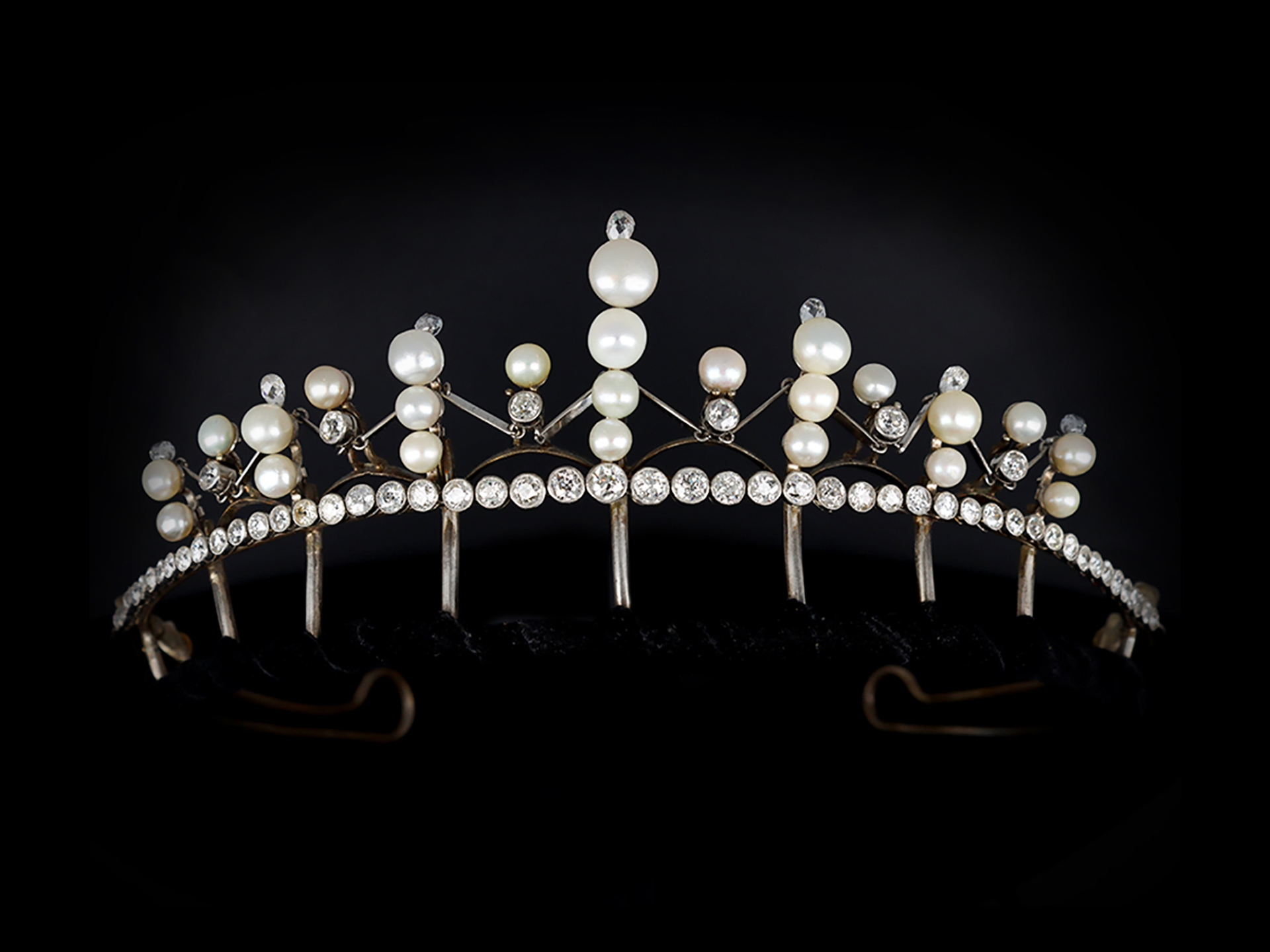 Natural pearl and diamond tiara/necklace/bracelet, circa 1920.