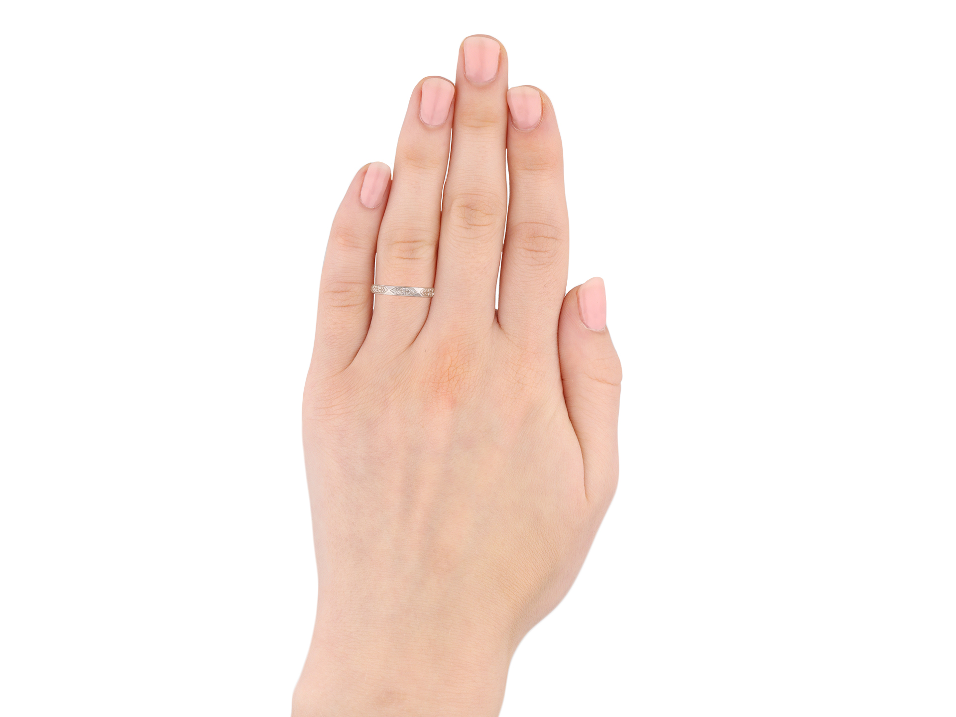 Engraved platinum wedding band, circa 1930.
