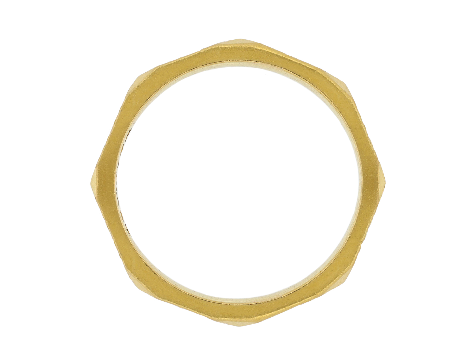 Faceted gold wedding ring. Faceted with a repeating scroll motif with millegrain details, 2.2mm in width. Marked 22 carat yellow gold, approximately 3.55 grams in weight, maker's mark 'S&D' for Slade & Dolphin, full set of hallmarks for Birmingham, English, 1950.