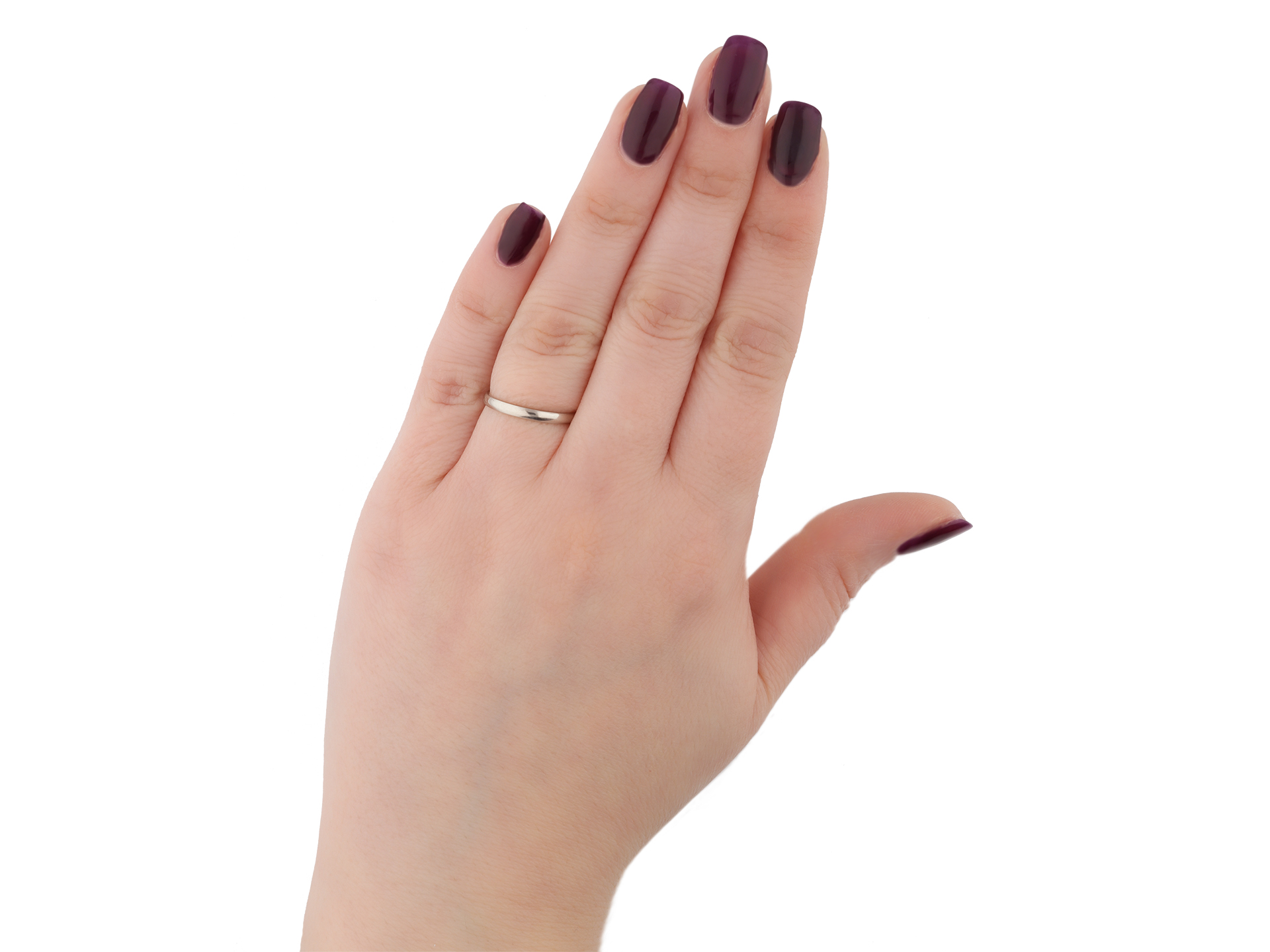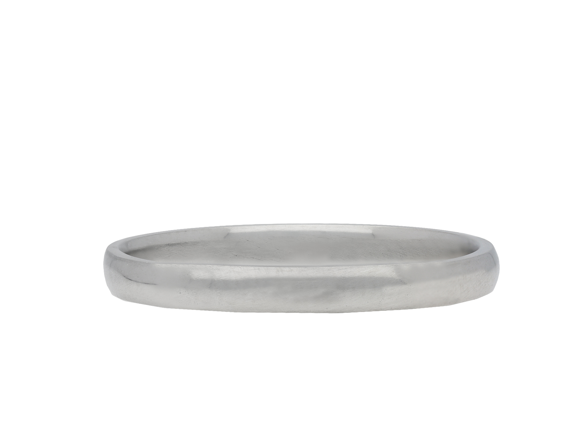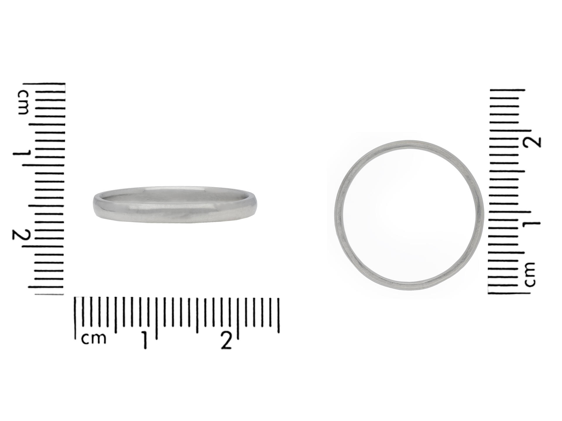 Platinum wedding band. A smoothly conforming D-shape wedding band with polished edges, approximately 1.3mm in width. Marked platinum, approximately 2.50 grams in weight, makers mark 'ACC' for Albion Chain Company, circa 1930.