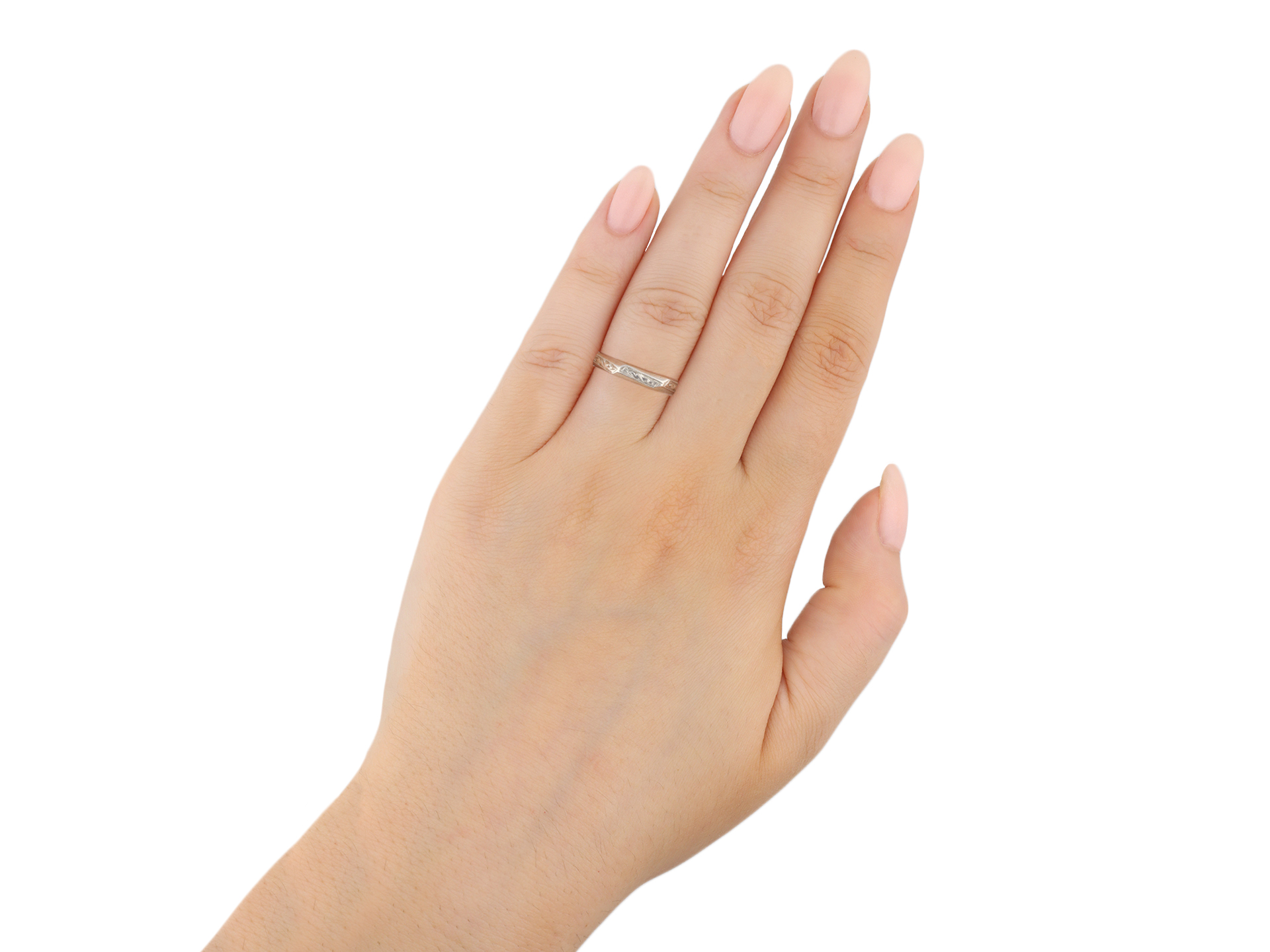 Platinum engraved wedding band, circa 1930.