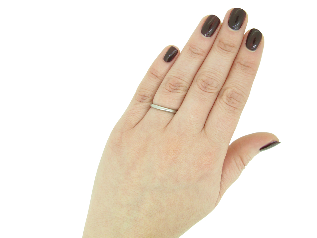 Platinum wedding band. A slim rounded wedding band, smoothly conforming to the full circumference, with polished edges, approximately 2.1mm in width. Marked platinum, approximately 2.80 grams in weight, circa 1930.