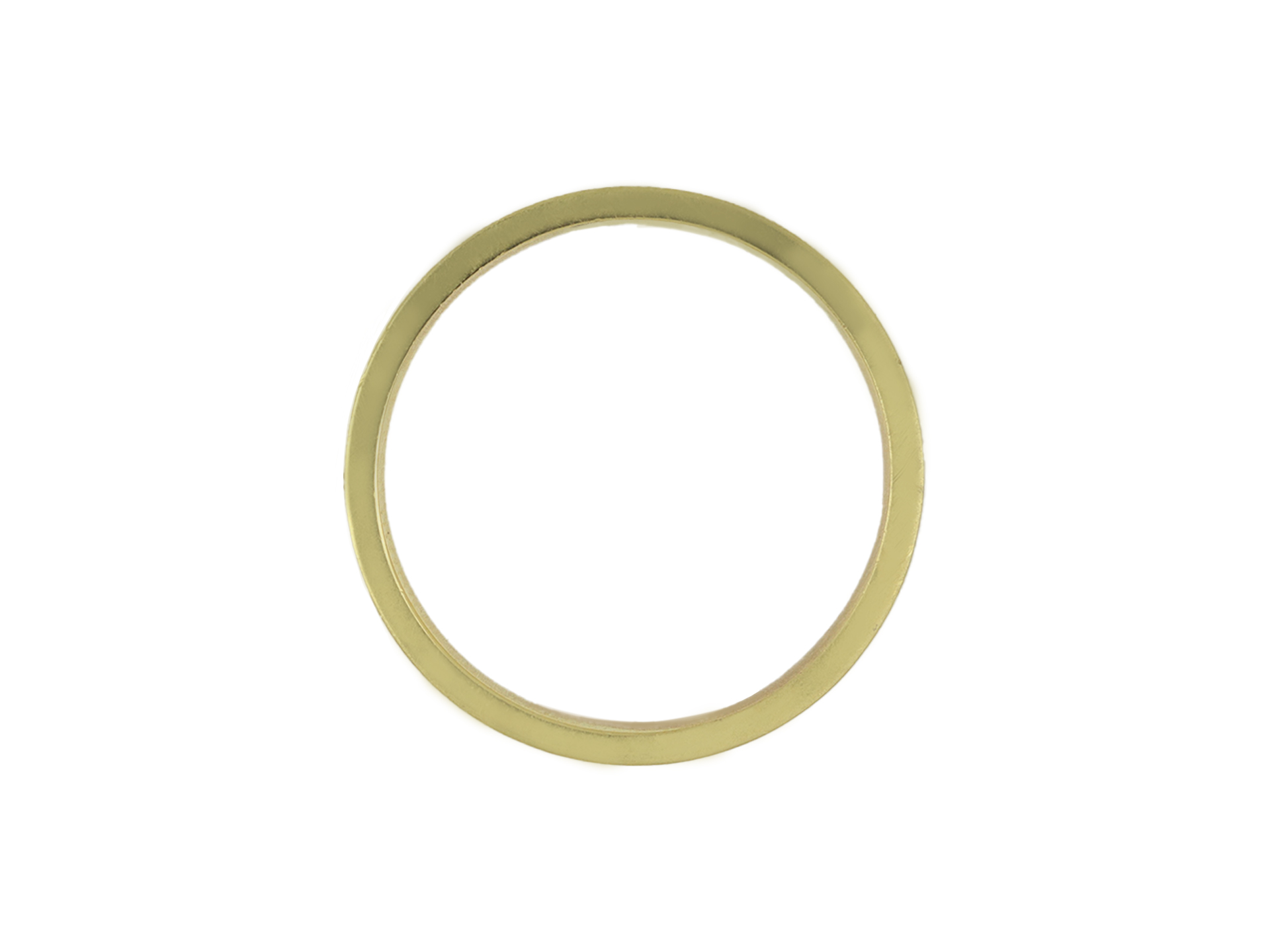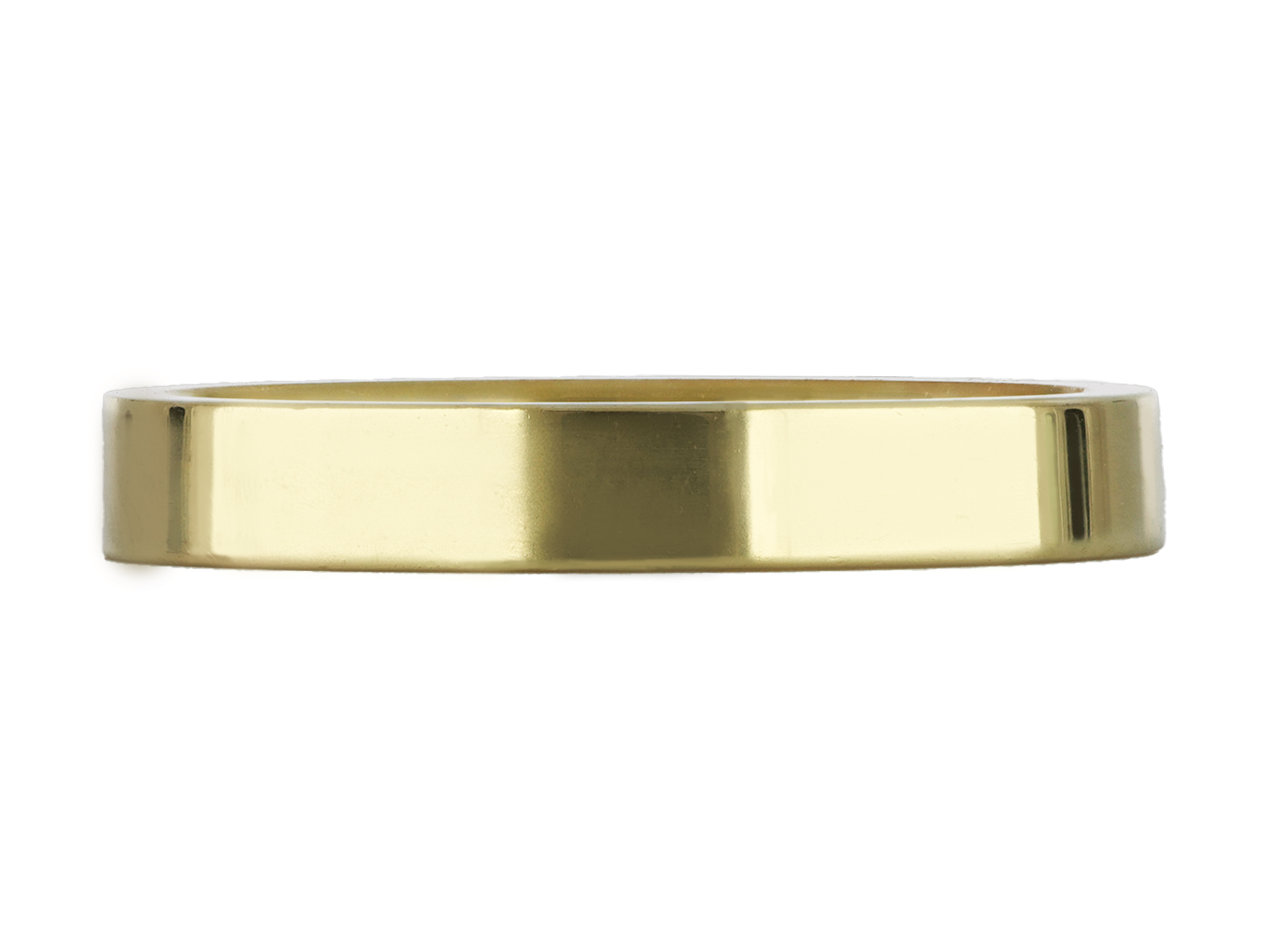 Gold wedding band. A smoothly conforming flat shape wedding band with polished edges, approximately 3mm in width. Tested 18 carat yellow gold, approximately 3.66 grams in weight, circa 1970.