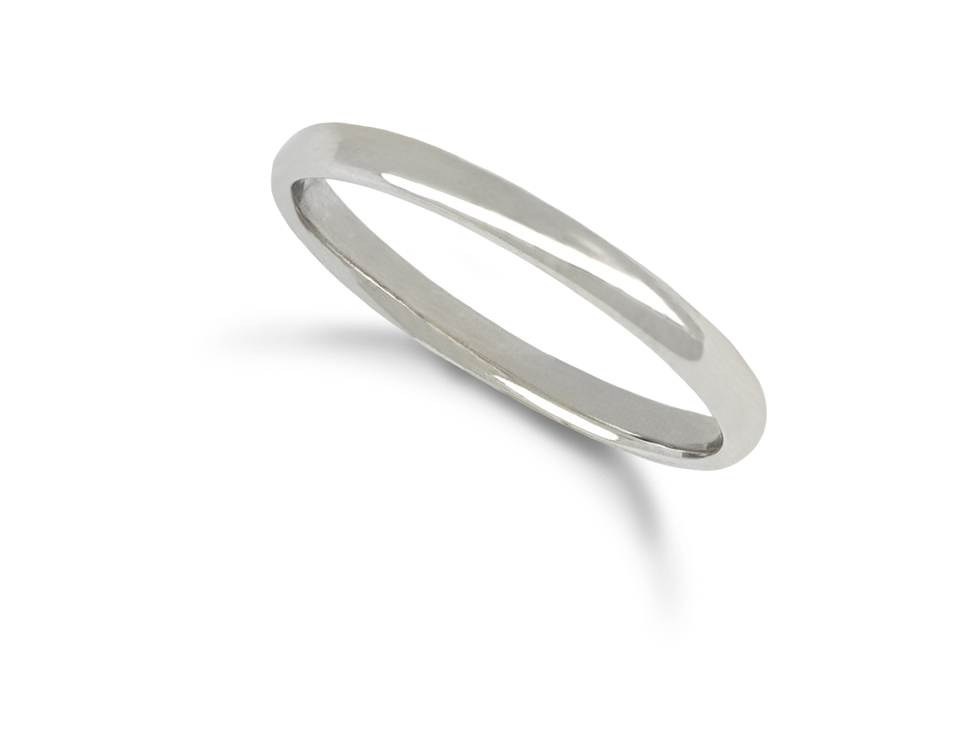 Platinum wedding ring. A smoothly conforming court shape wedding band with polished edges, approximately 2mm in width. Tested platinum, approximately 2.12 grams in weight, circa 1930.