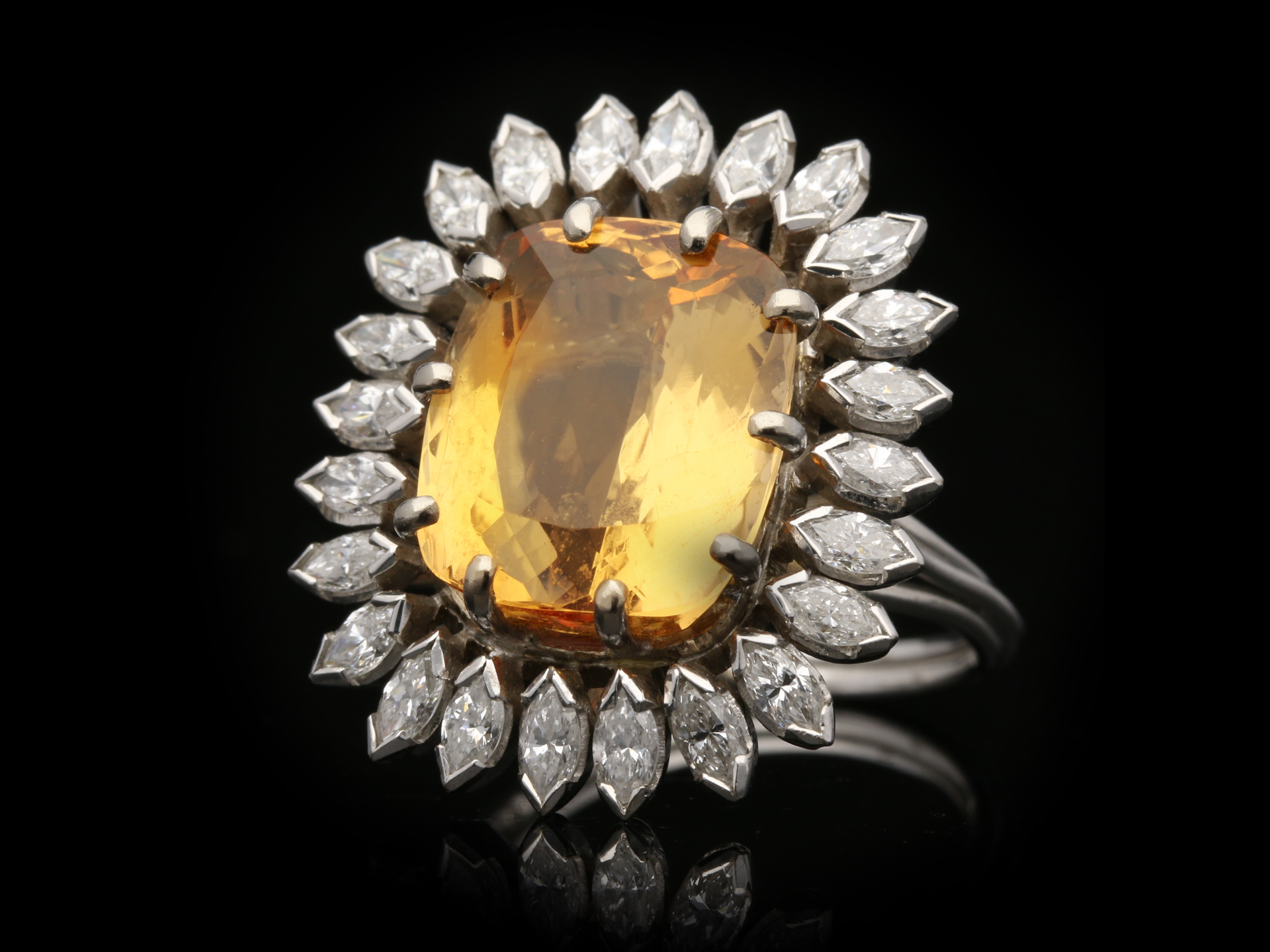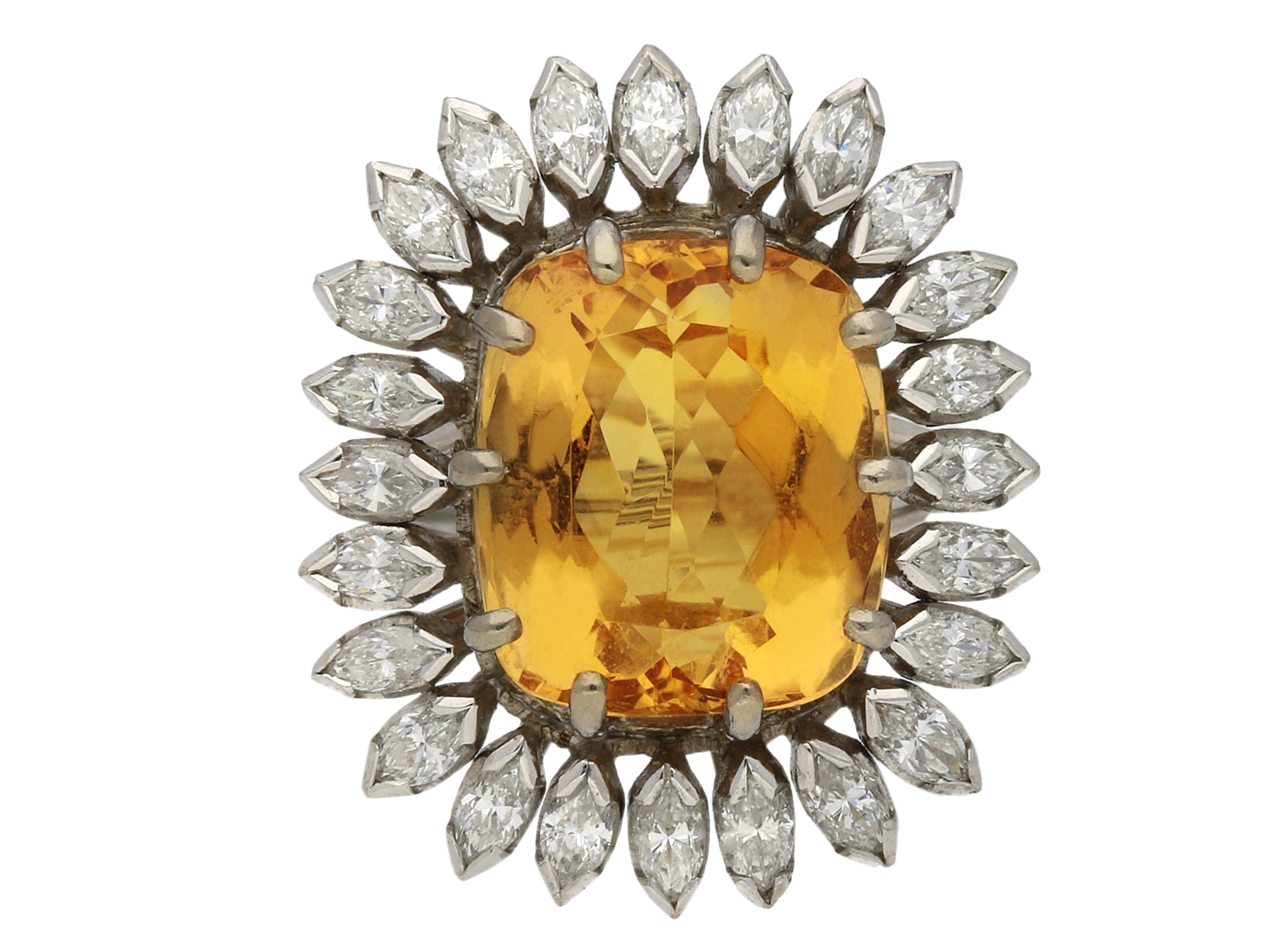 Vintage topaz and marquise diamond cluster ring, circa 1980.